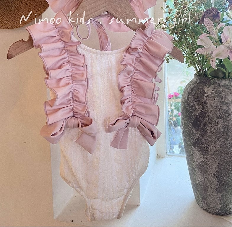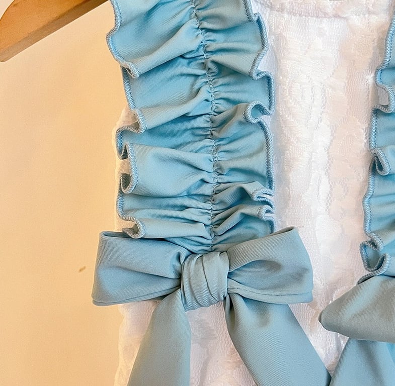 【予約】【90-140】 サイド シャーリング フリルリボン スイムウェア
