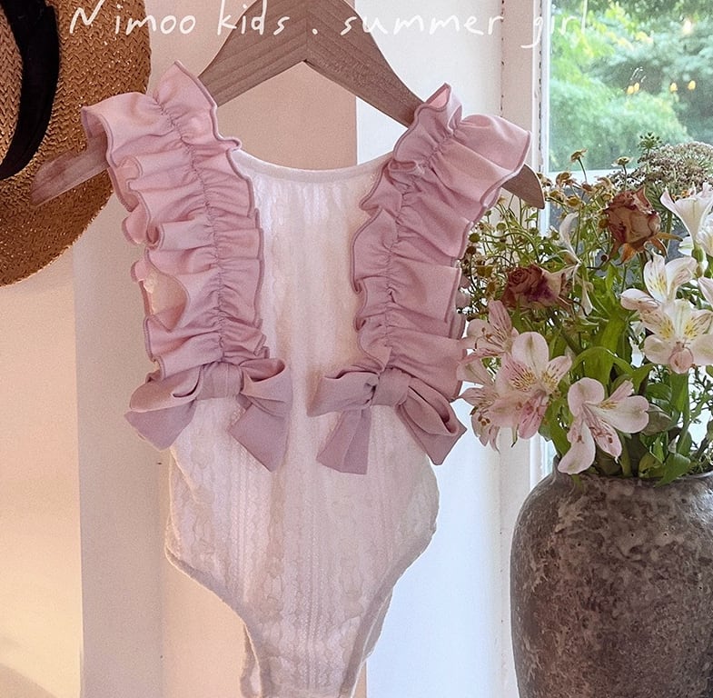 おしゃれなデザインと、快適な着用感が魅力です。特に、サイドのシャーリングが印象的で、子供たちをさらに素敵に演出します♡お水遊びやプール、ビーチでのコーディネートにも最適♡