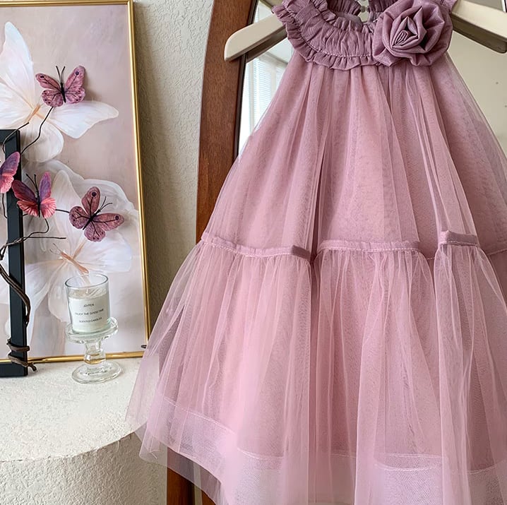 【予約】【90-150 】2color ローズ チュール ドレス pp