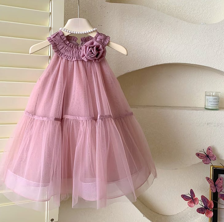 華やかなローズデザインのチュールドレスが登場!リッチなチュール素材が華やかさを引き立て、お子様の特別な日やお誕生日撮影に最適です♡