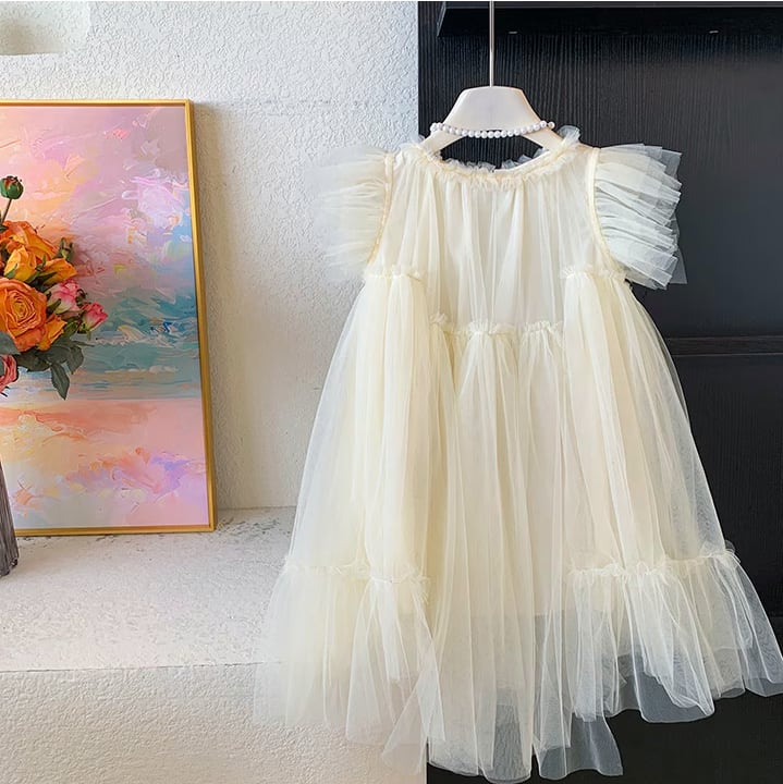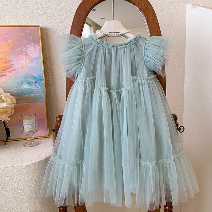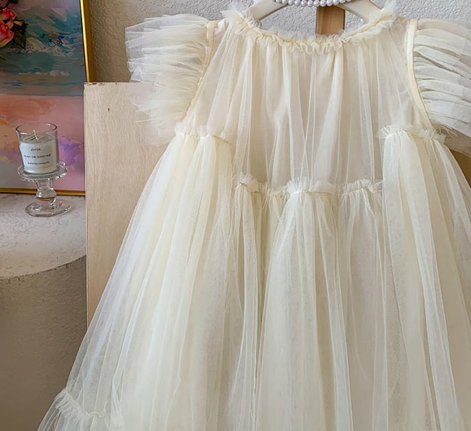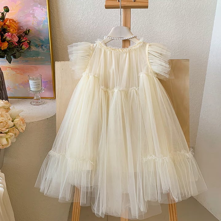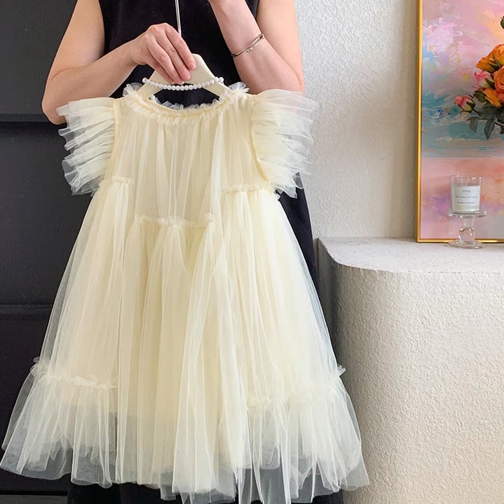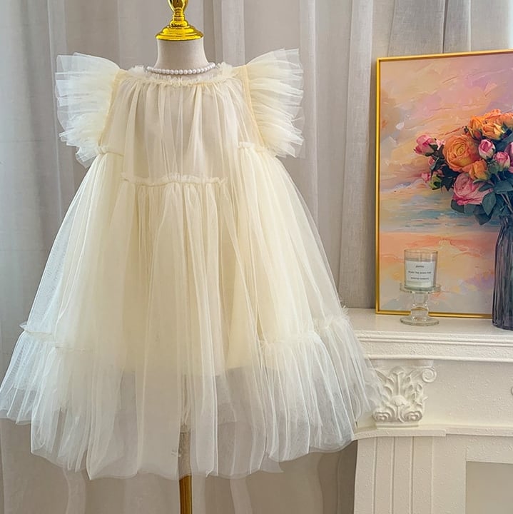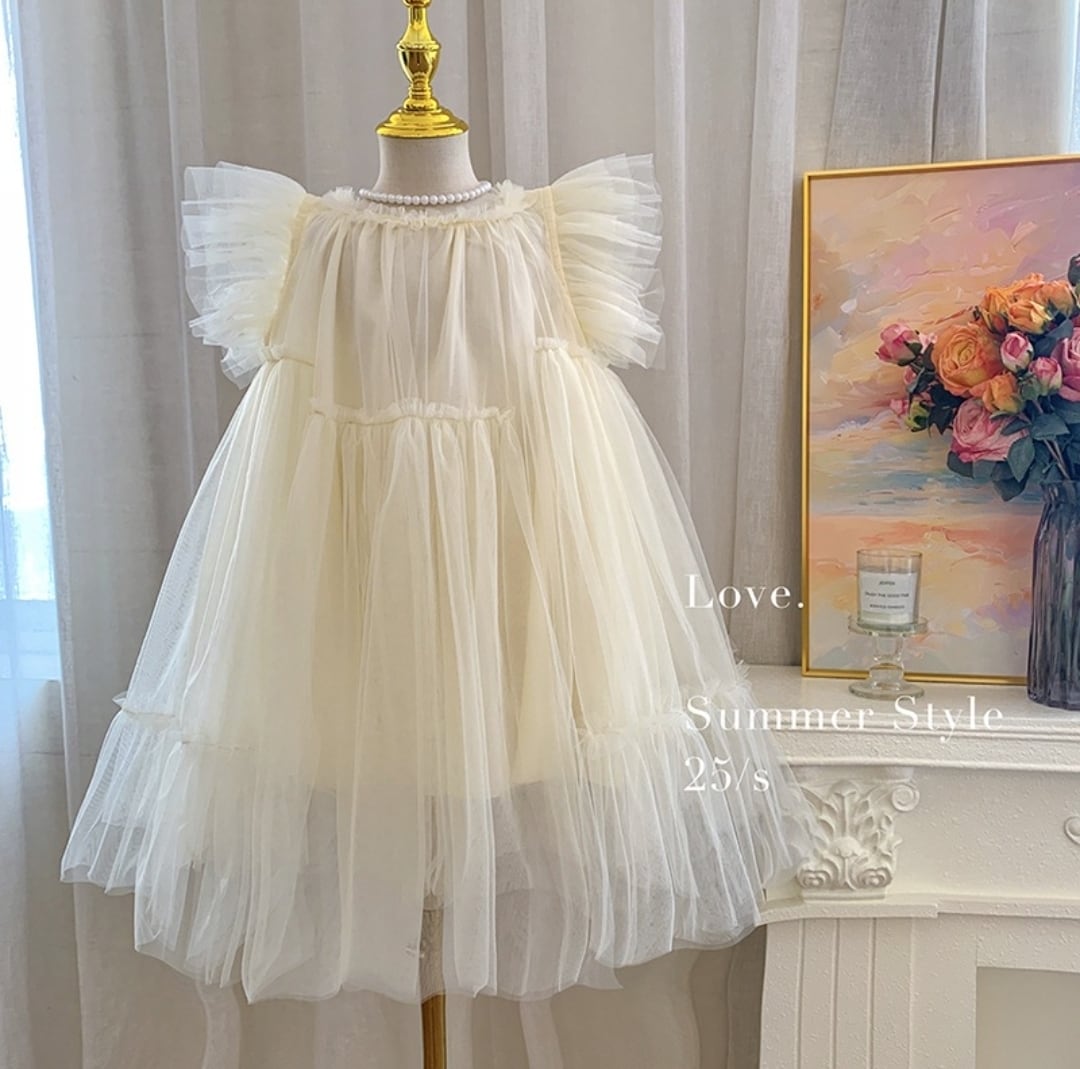 【予約】【90-140 】2color バタフライスリーブ チュール ドレス