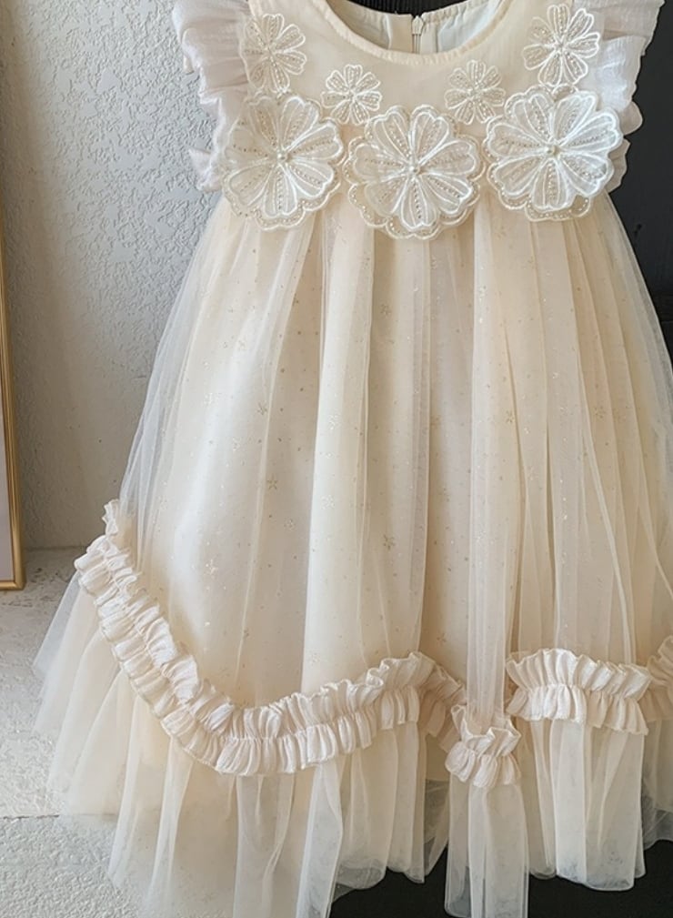 【予約】【100-140】ドレープ レース フラワー ドレス pp