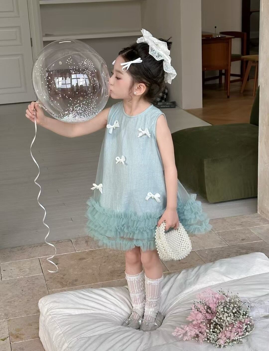 可愛らしいブルーリボンとフリルがポイントのドレス♡