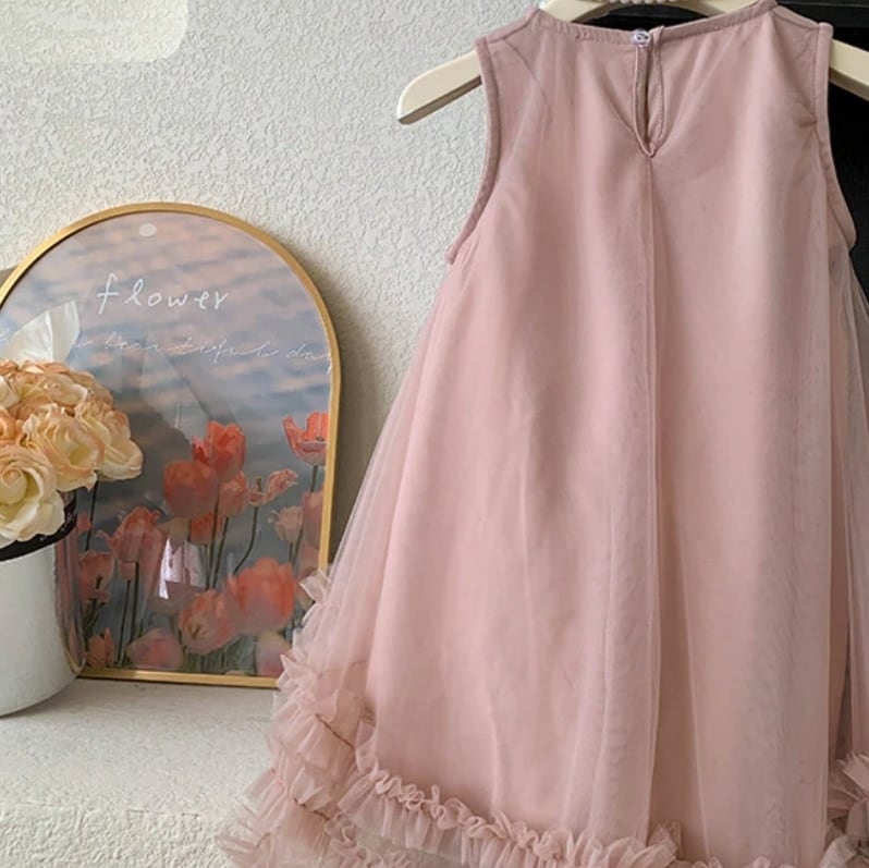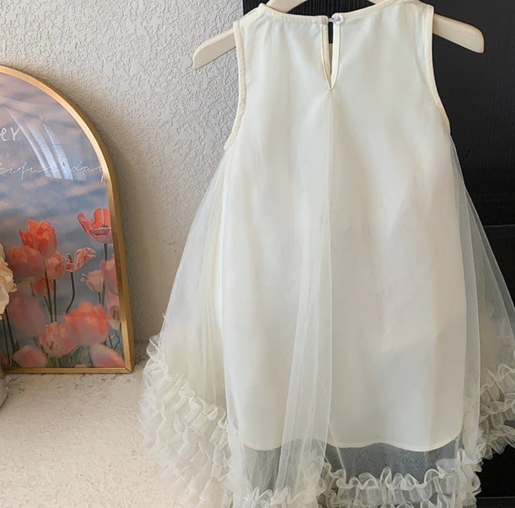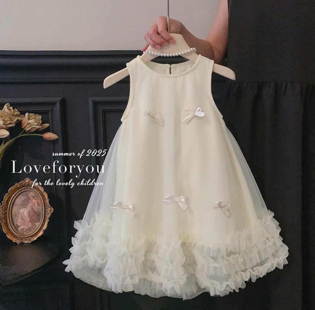 【予約】【90-150 】2color リボン アシンメトリー チュール ドレス pp