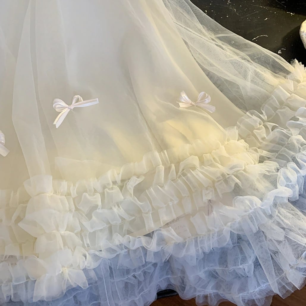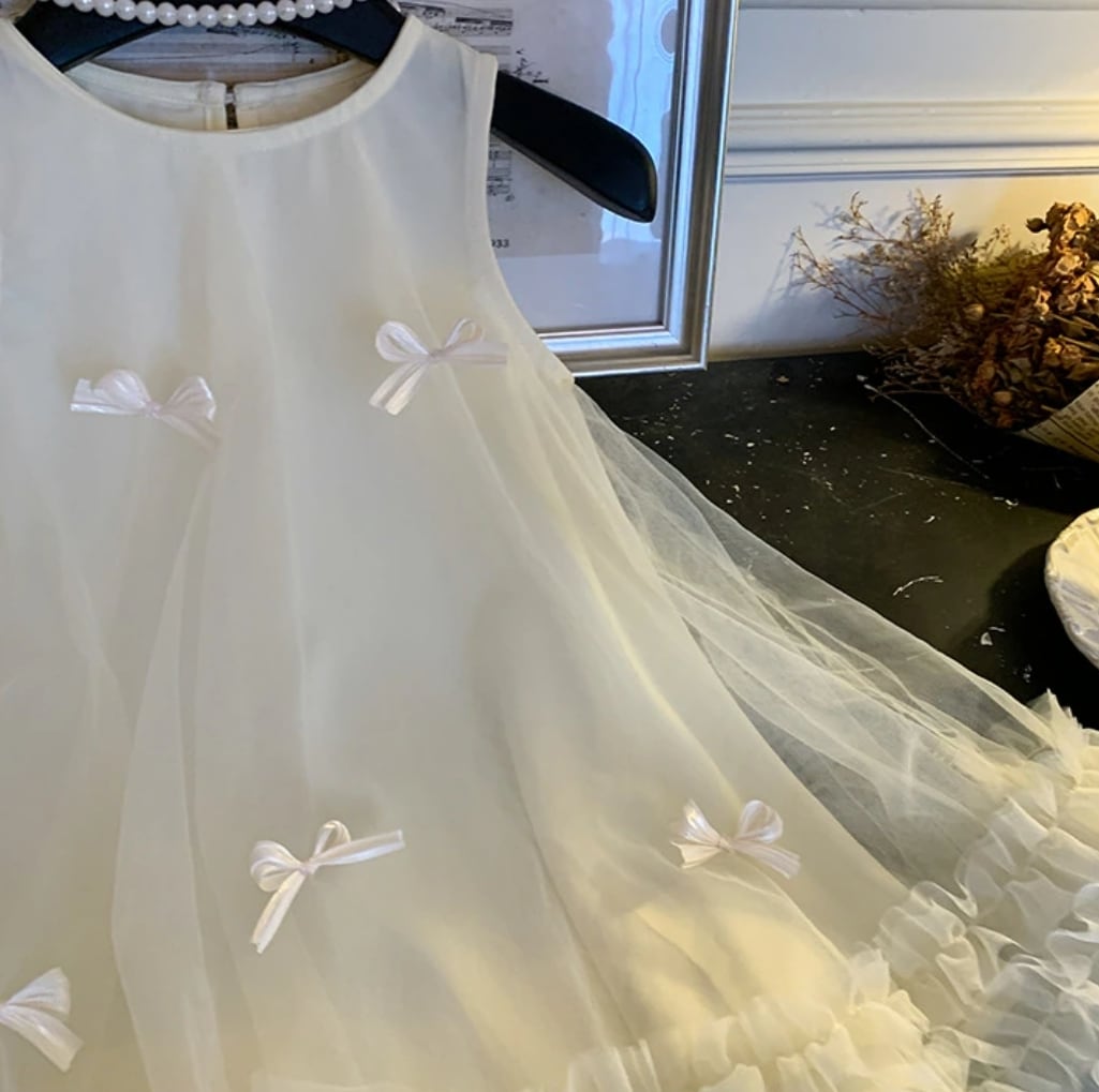 可愛らしいリボンとリッチなチュール素材が華やかさを引き立て、お子様の特別な日やお誕生日撮影に最適です♡
