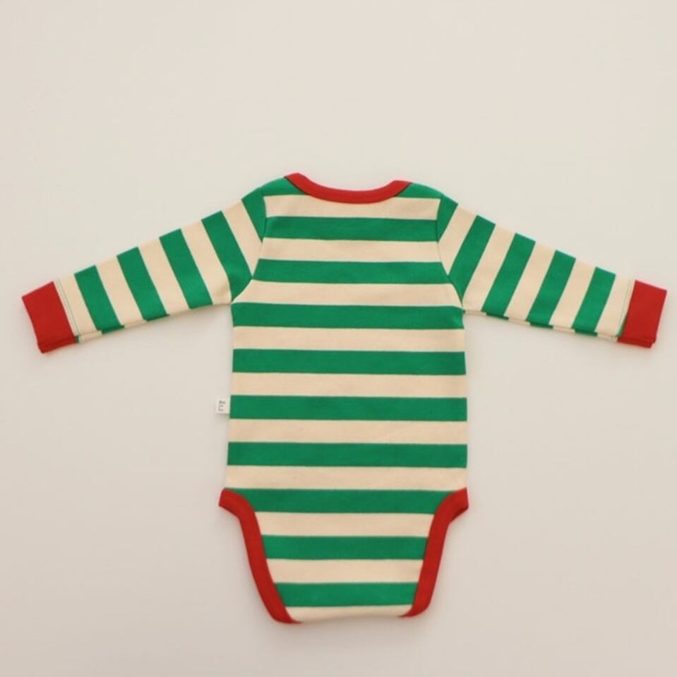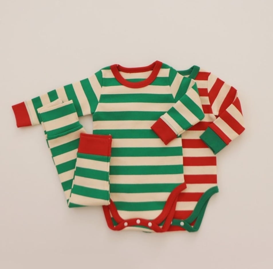 【予約】【66-90】クリスマス カラー ボーダー ロンパース + レギンス セットアップ