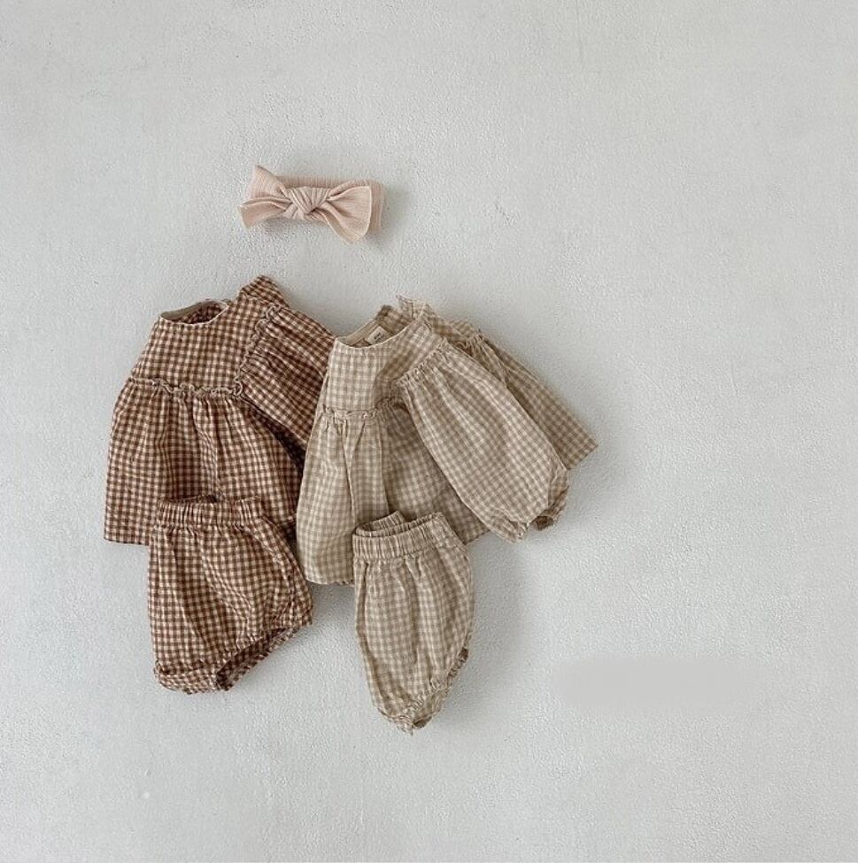 【予約】【66-90】 チェック パフチュニック + ブルマ セットアップ