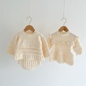 【予約】【66-100】ミルク フリル ニット ロンパース