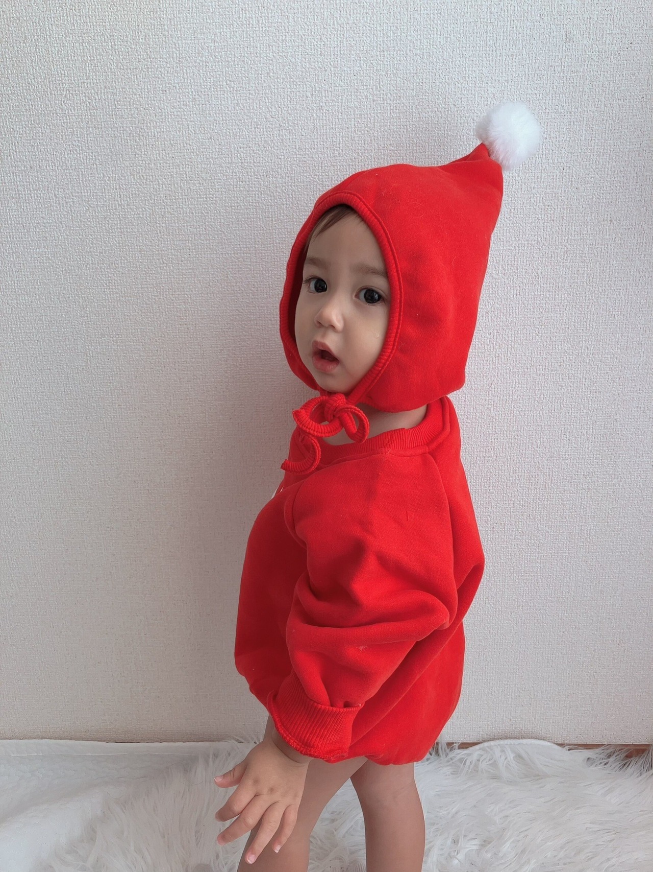 クリスマスカラーが可愛い ロンパース + ボンネット の セットアップ♡