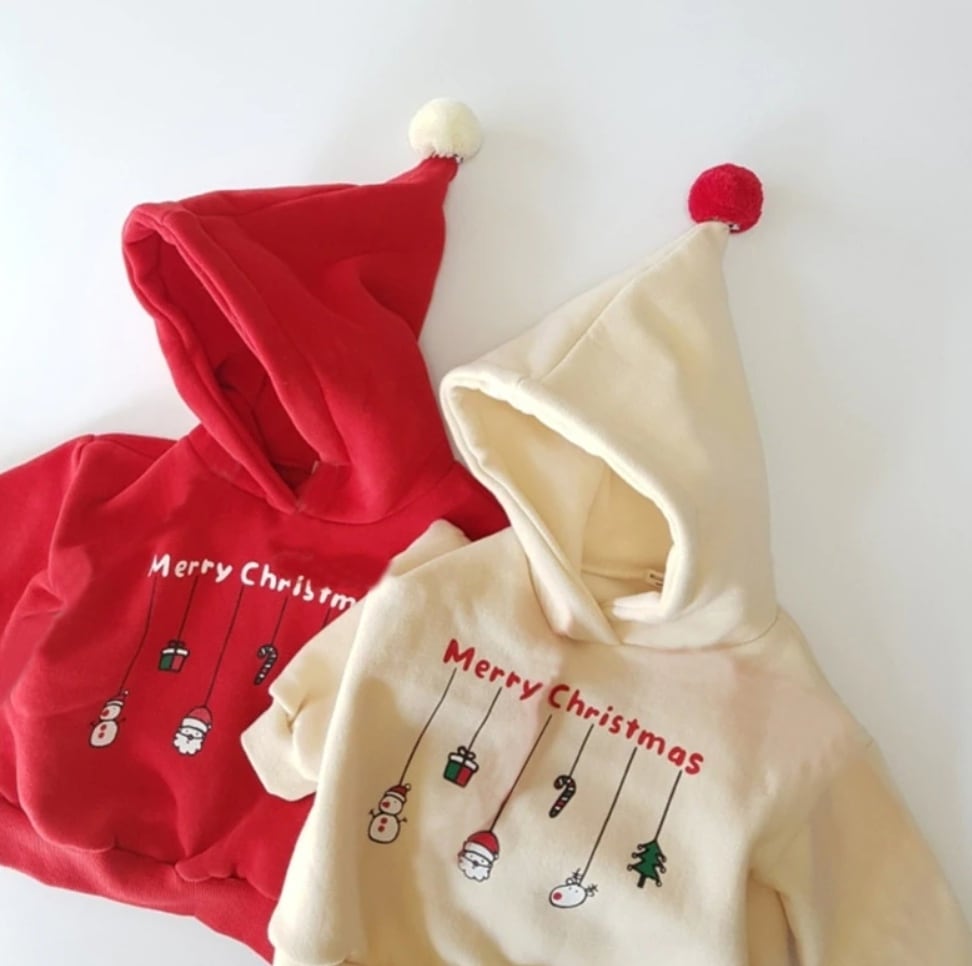 【予約】【80-130】クリスマス ぽんぽん フード付き パーカー