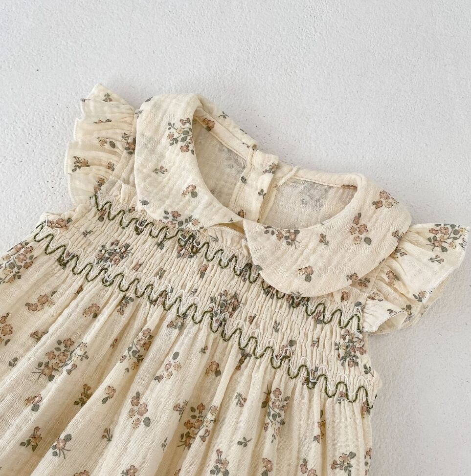 【予約】【66-90】アンティークフラワー 丸襟 ロンパース
