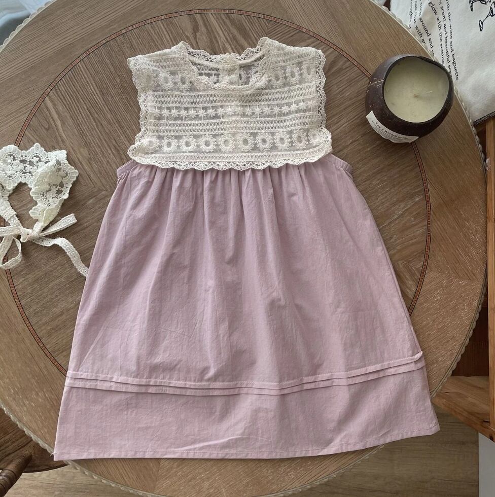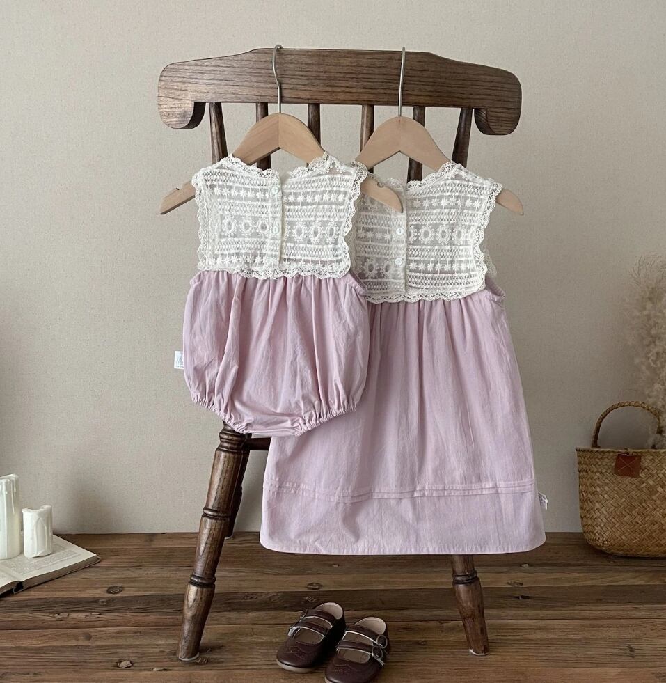 【予約】 lavender lace yoke dress & rompers