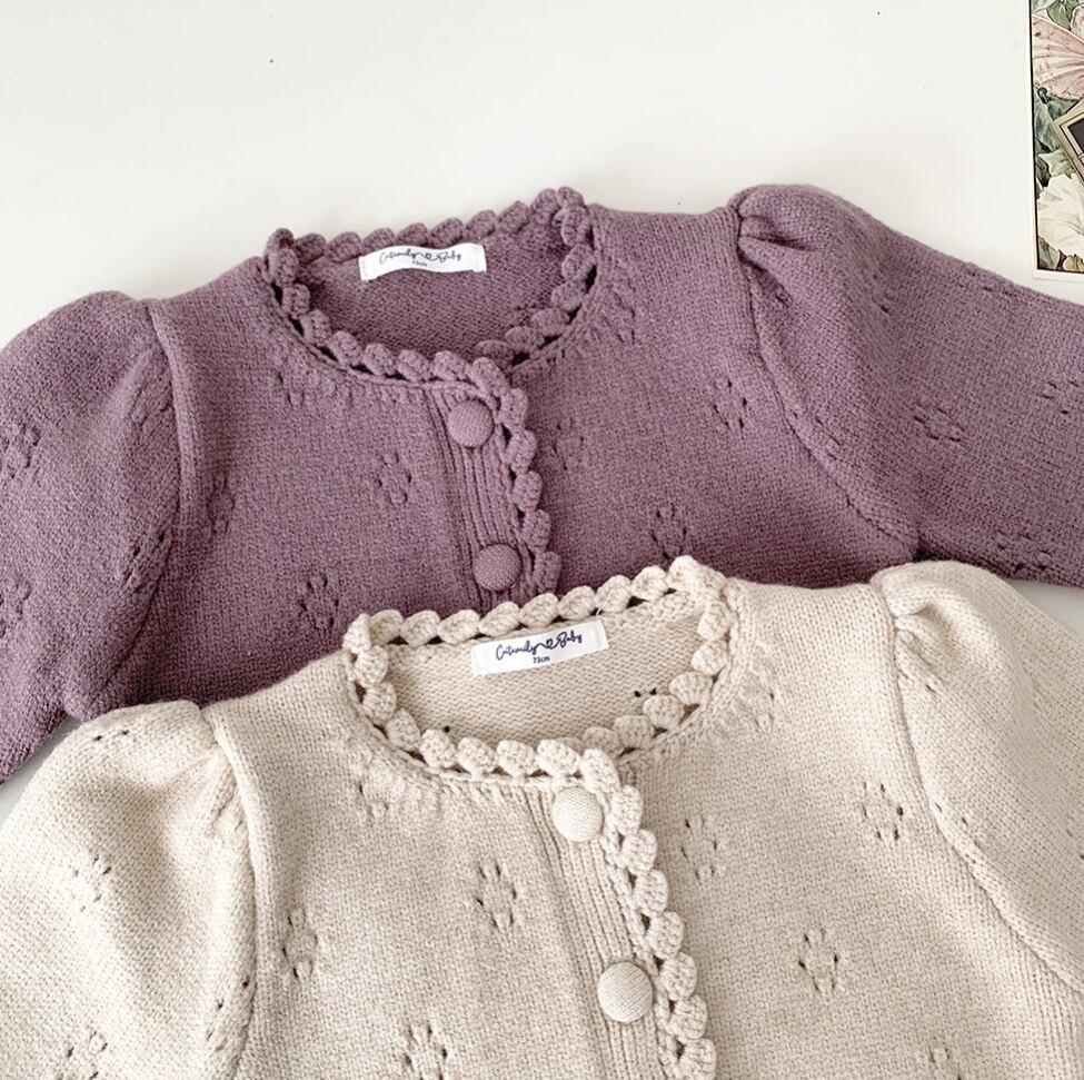 繊細な網目と肩のふんわりシルエットが可愛い♡♡ニットカーディガン