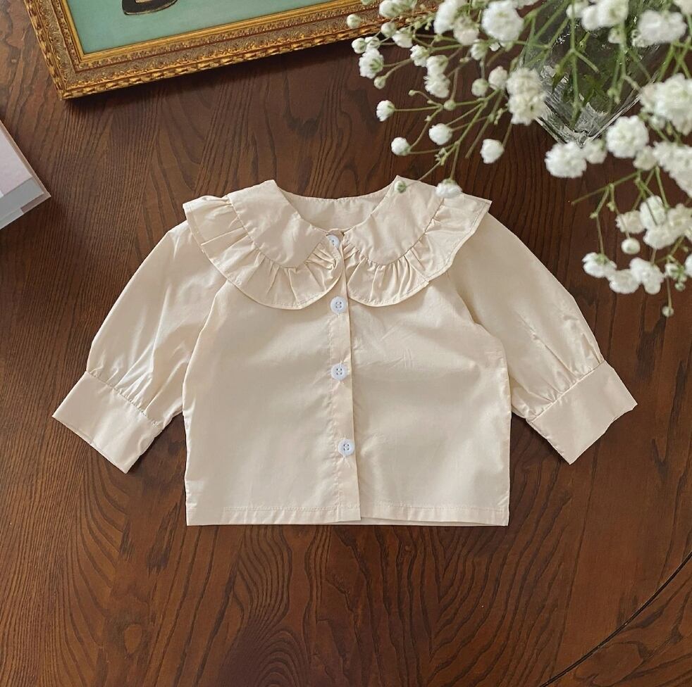 人気のおおきなフリル襟のブラウスは女の子らしい雰囲気を演出します。