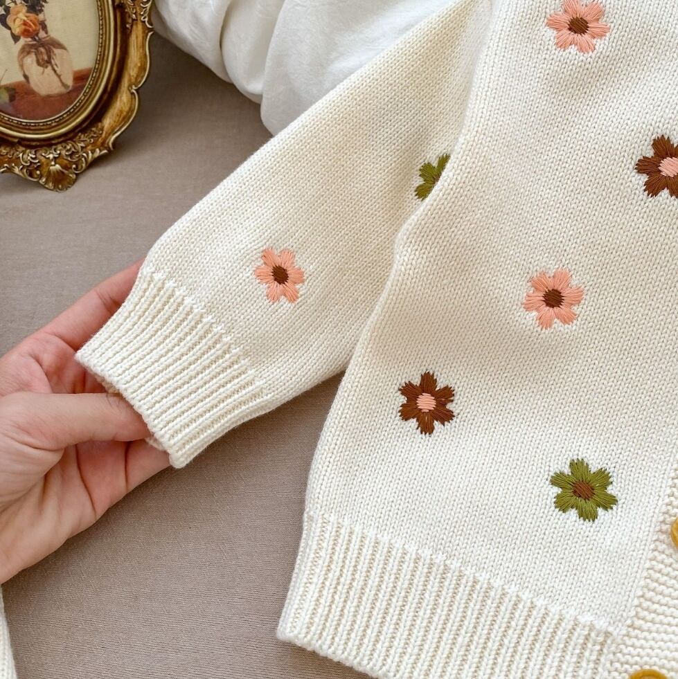 フラワー刺繍が可愛い マーガレット ニット カーディガン です♡