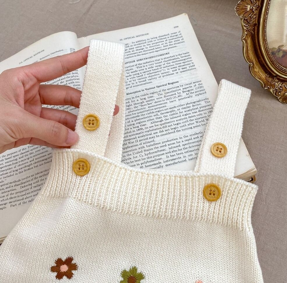 お花の刺繍が可愛い マーガレット ニット ロンパース です♡
