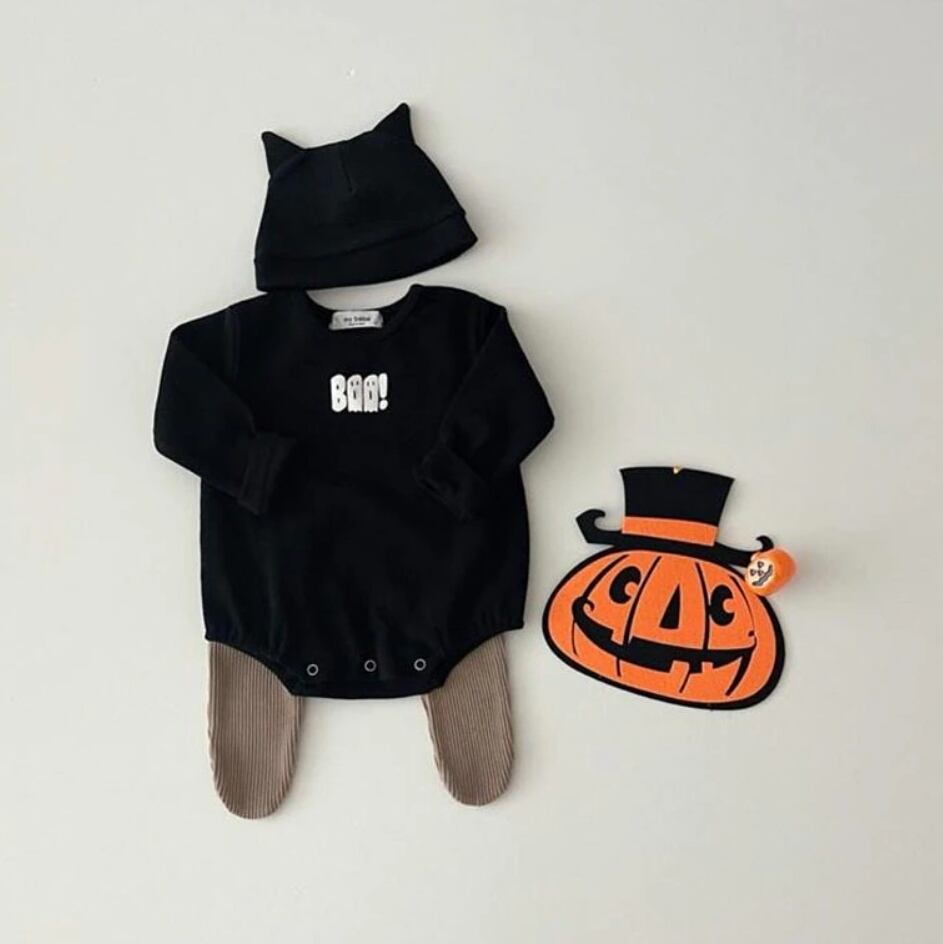 【予約】【66-90】 帽子付き BOO おばけ ロンパース