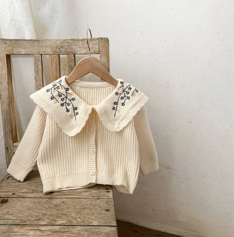 フラワー刺繍とビッグカラーが可愛い ニット カーディガン です♡
