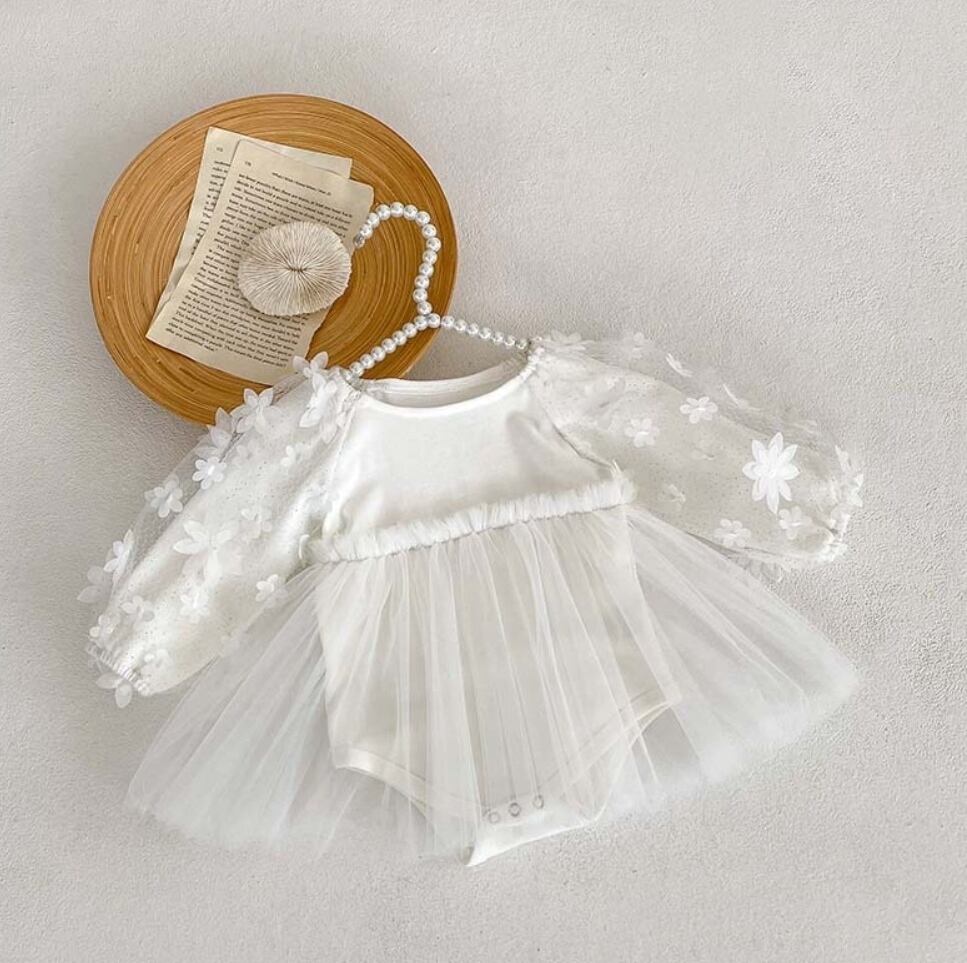 【予約】【66-90】2color フラワー シフォン チュール ロンパース