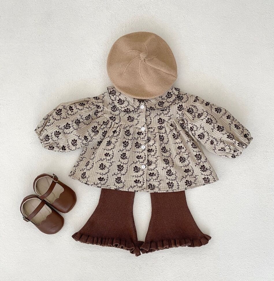 ベビーネック長袖トップス+フレアパンツ