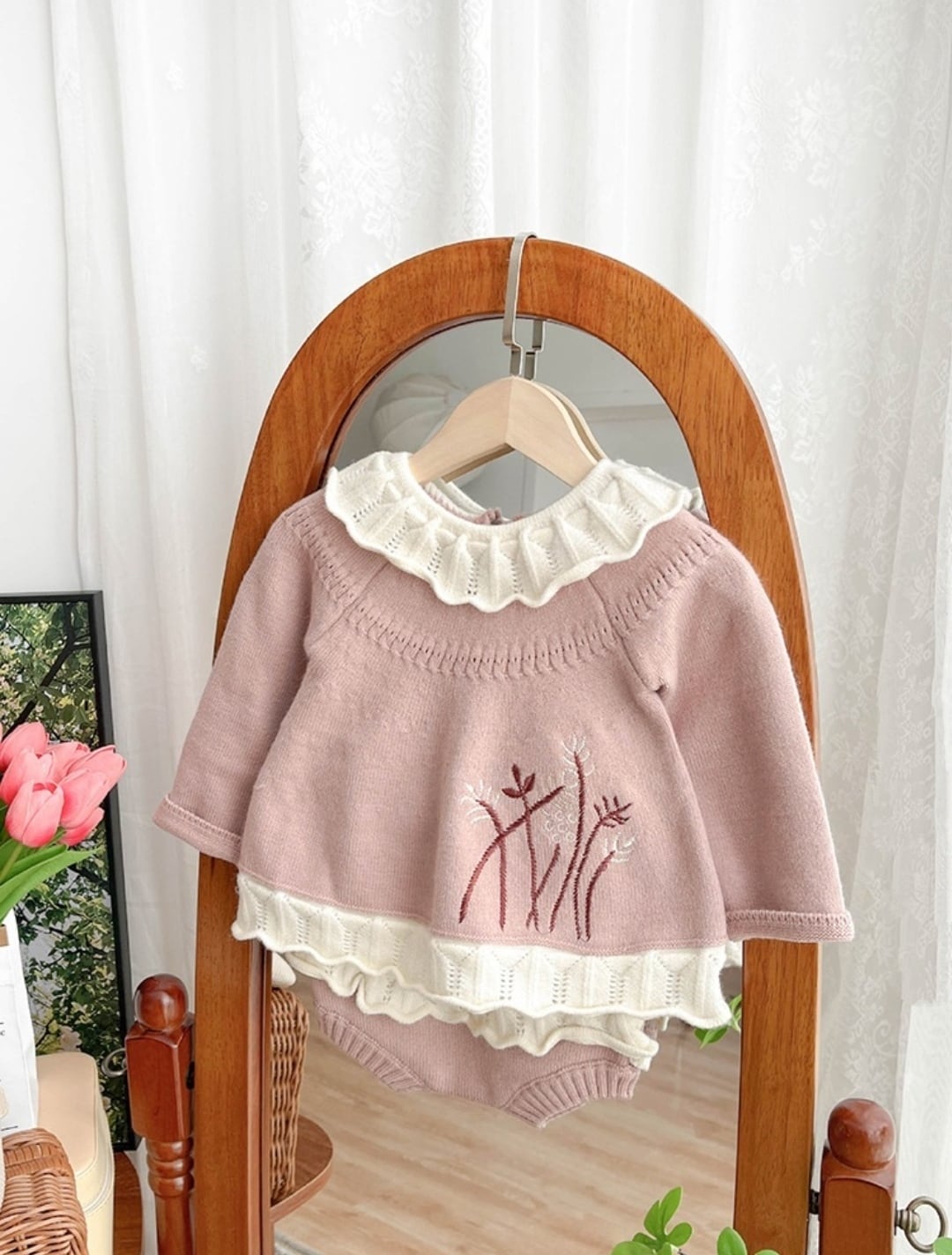 落ちついたピンクのニットトップスとスカートがセットになったおしゃれなアイテムです♡