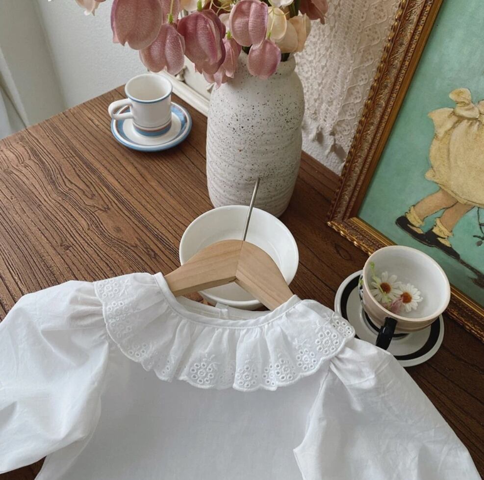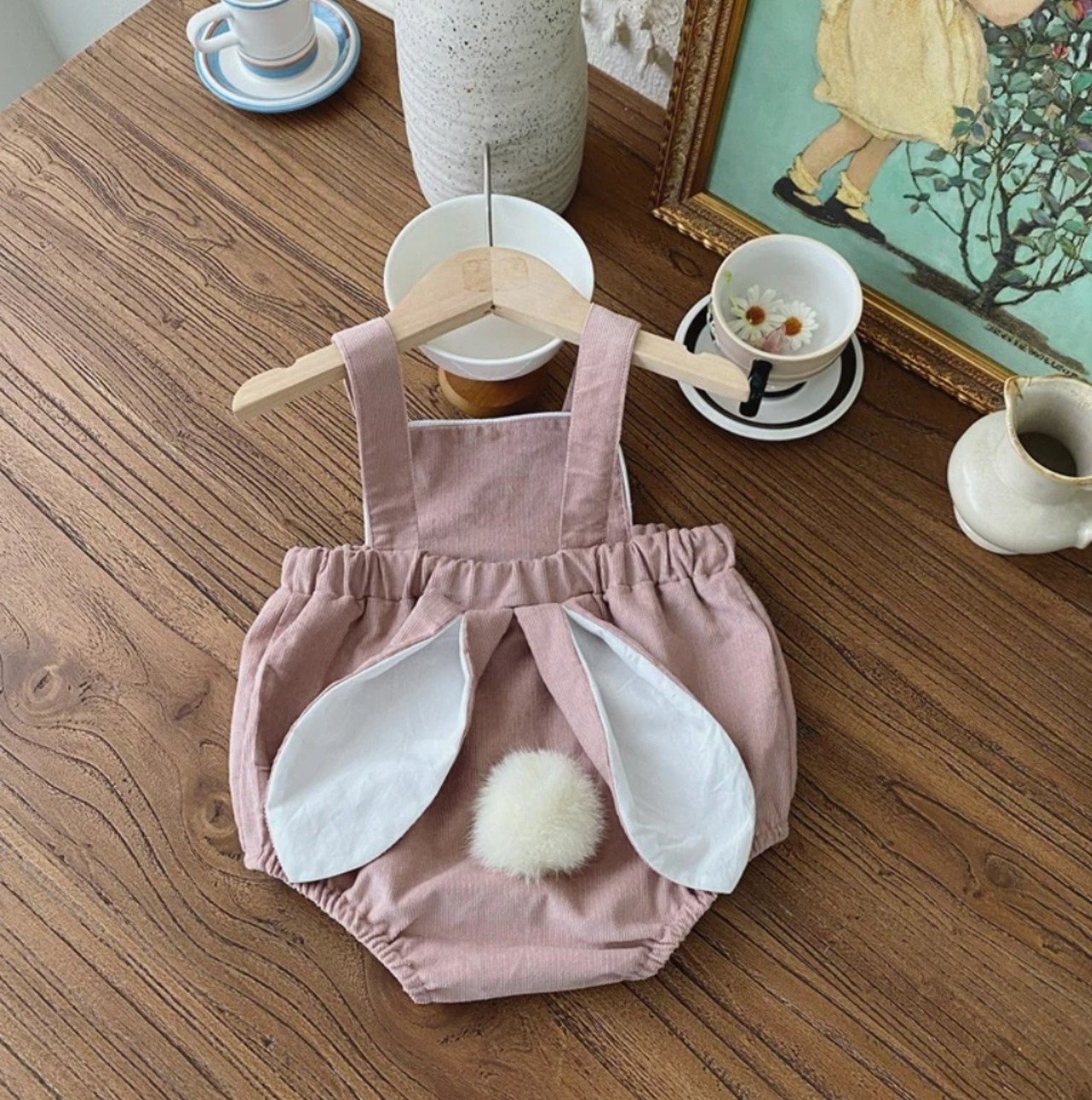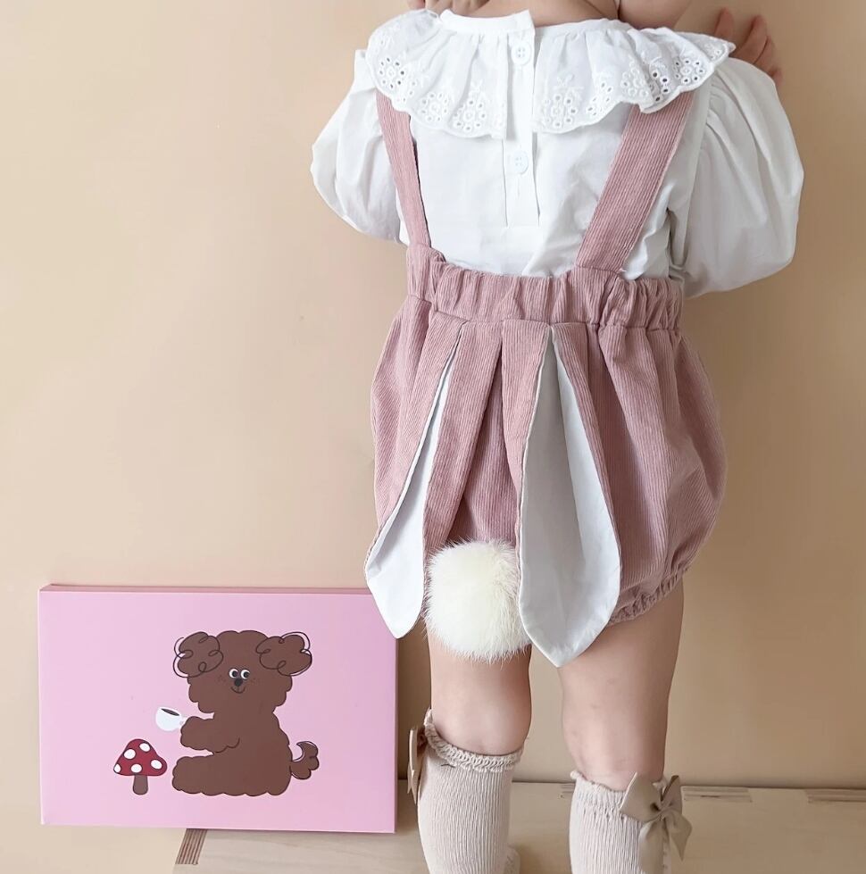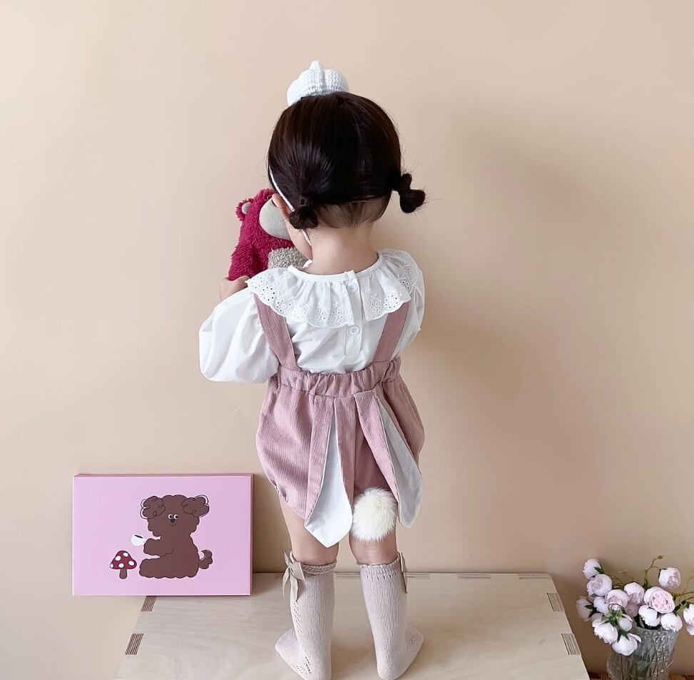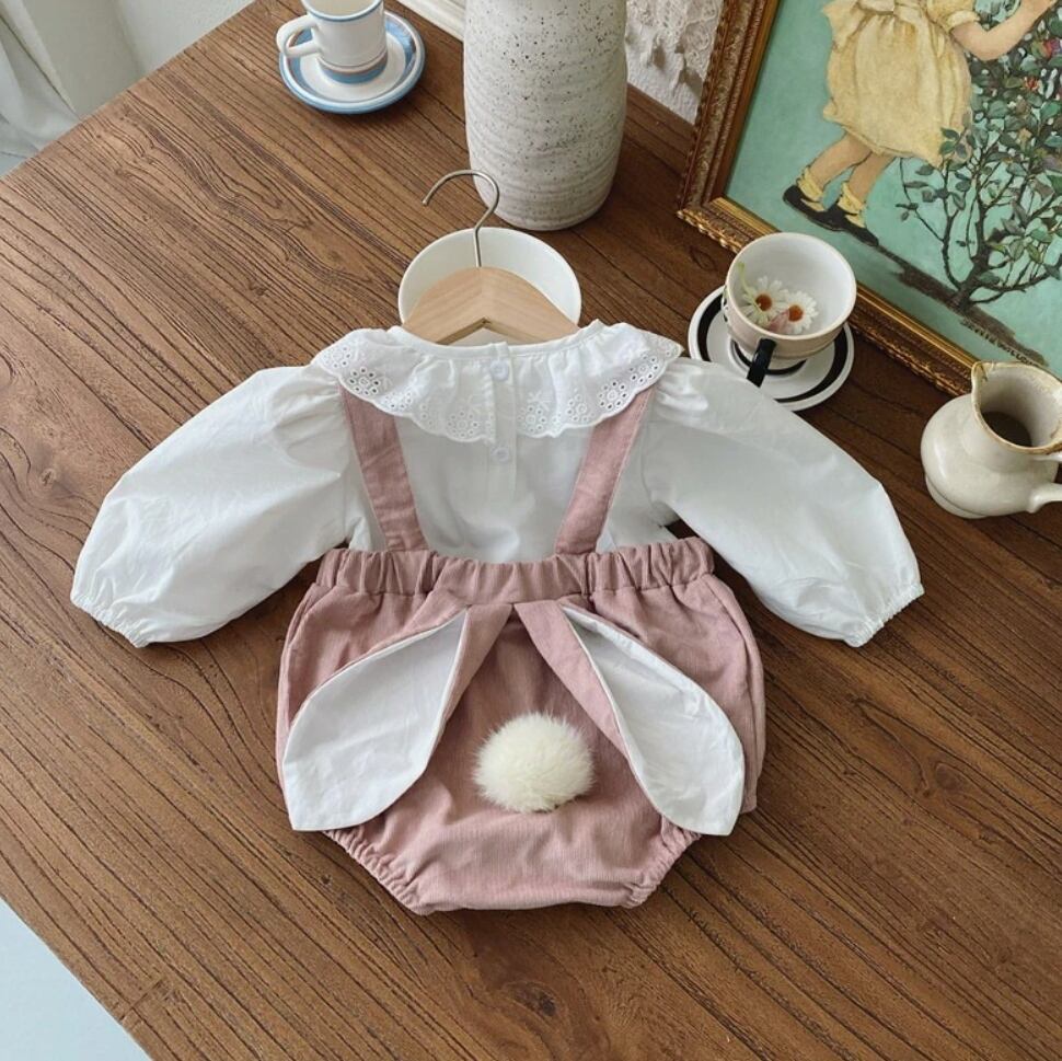【予約】【66-90】うさちゃんサロペット + フリルブラウス セットアップ