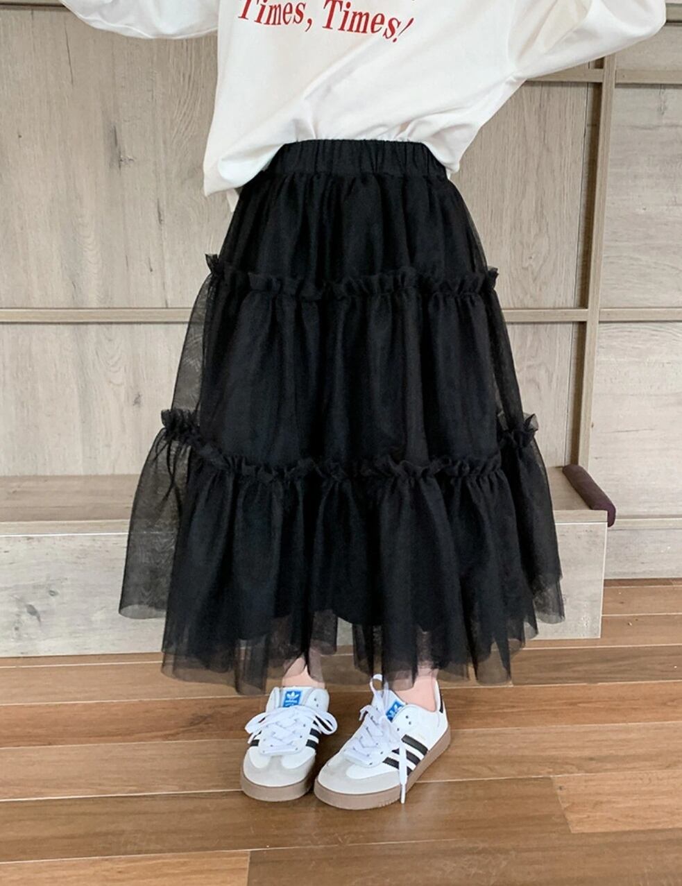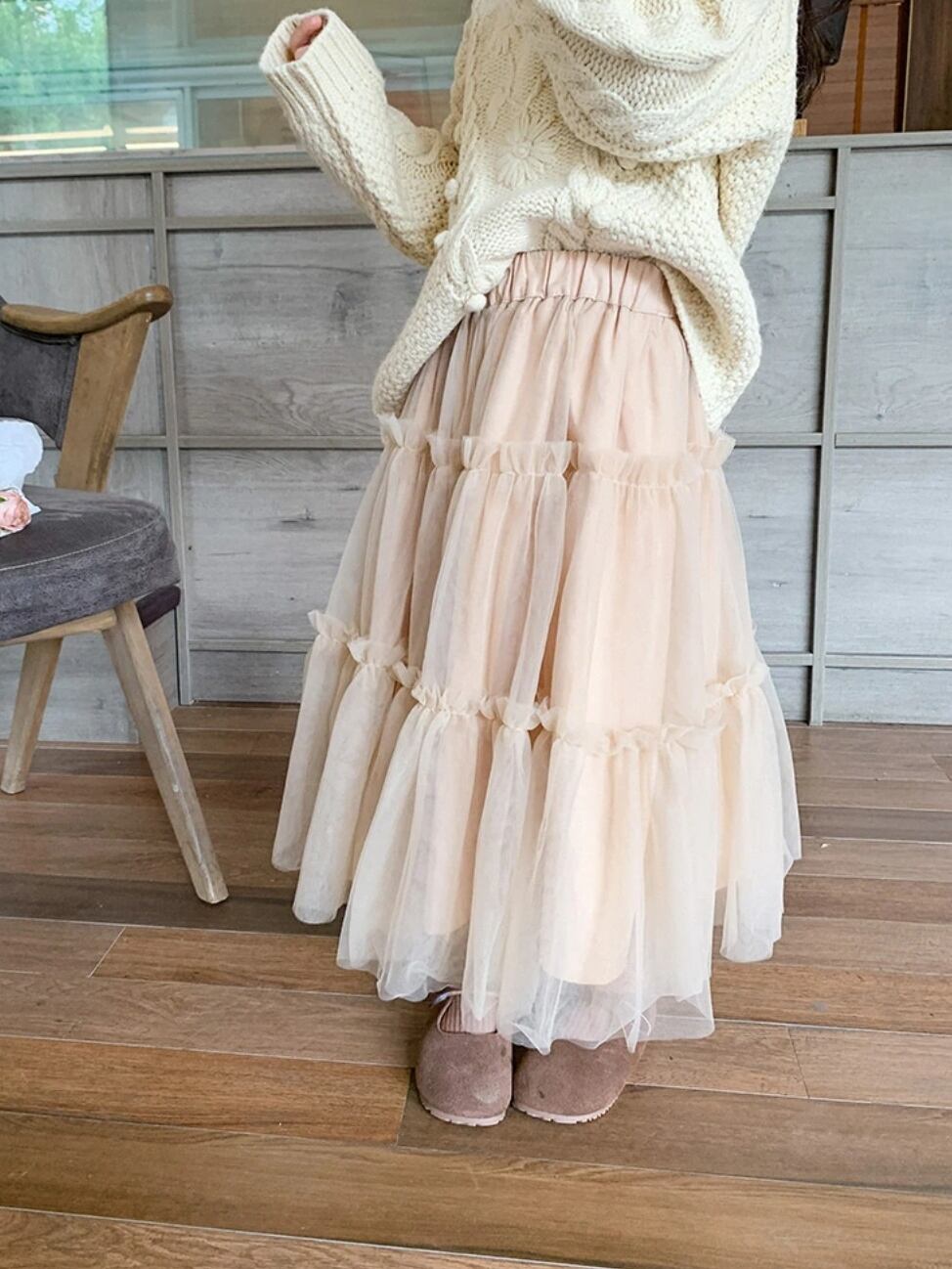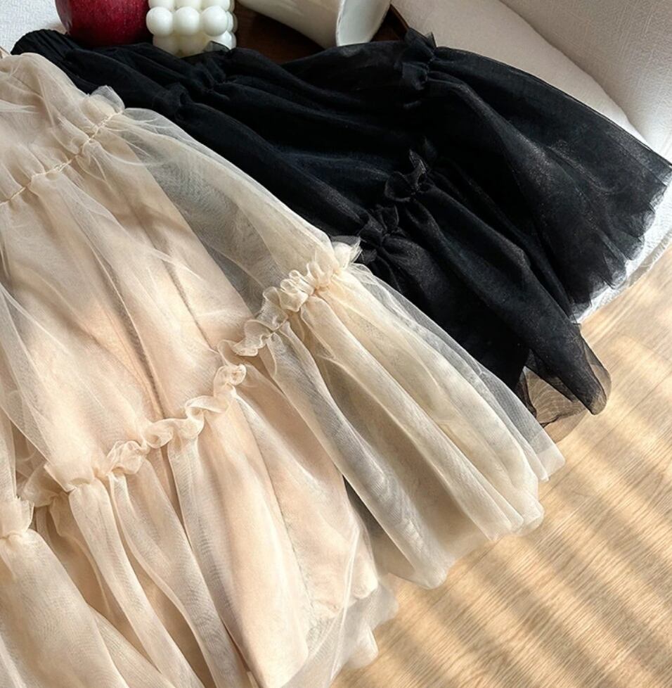 【予約】【90-150 】2color シフォン ロングスカート