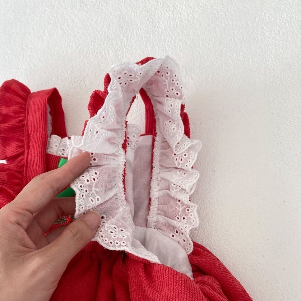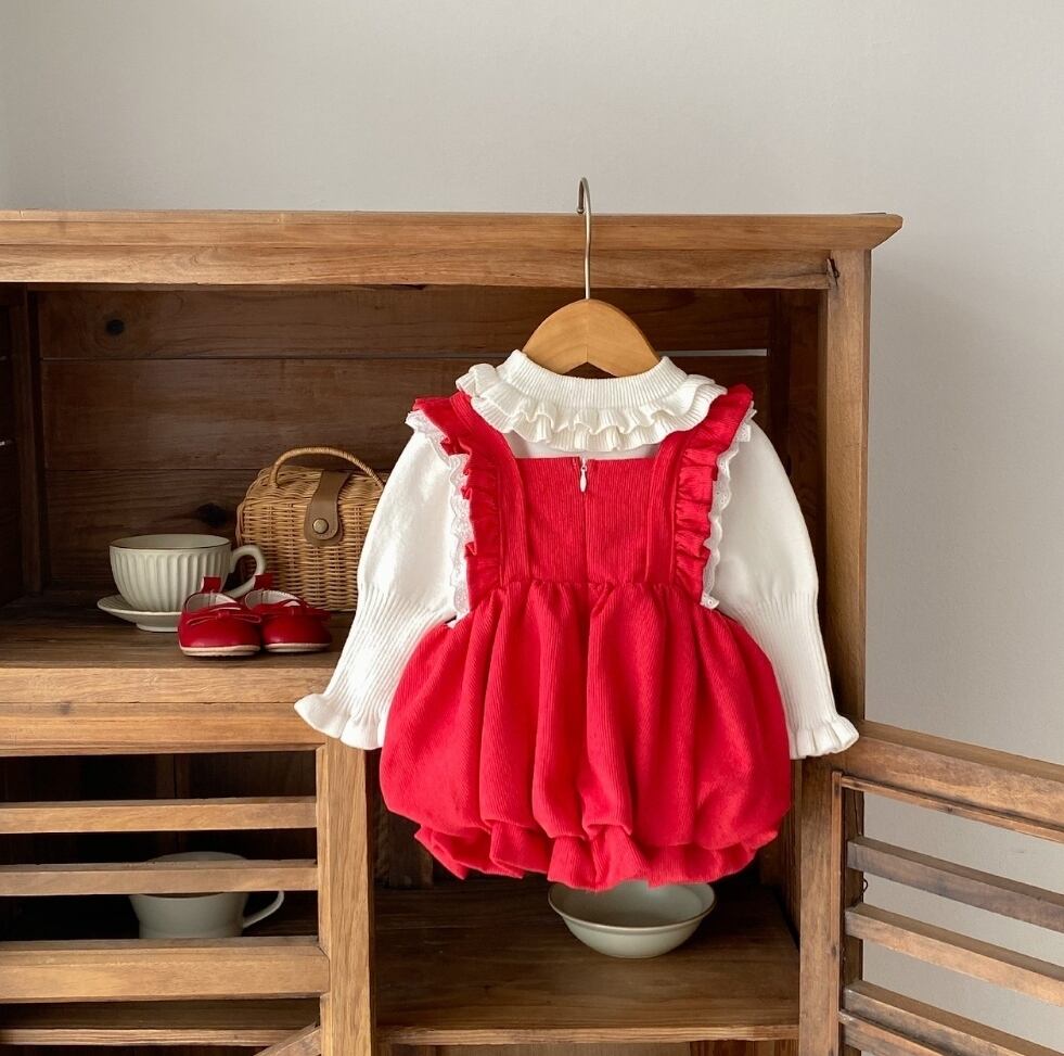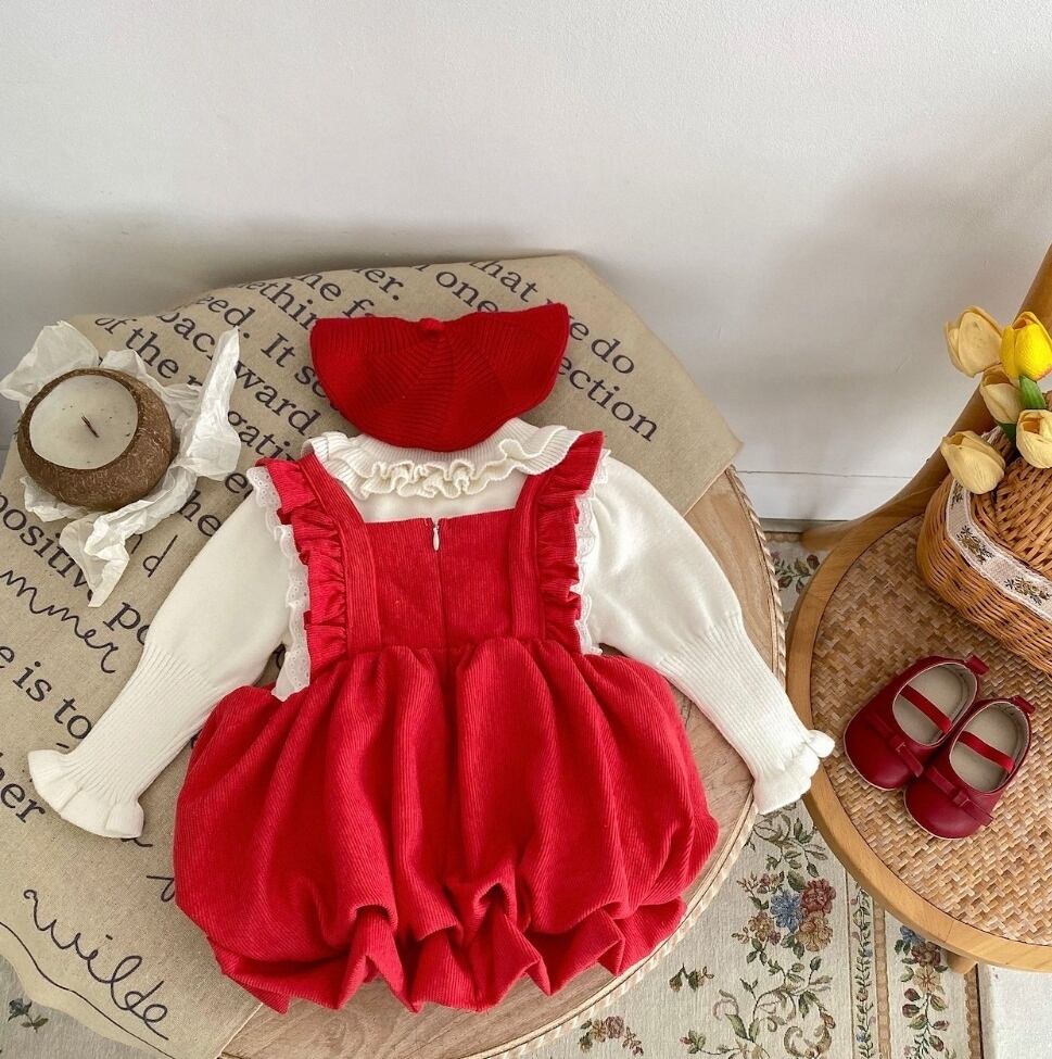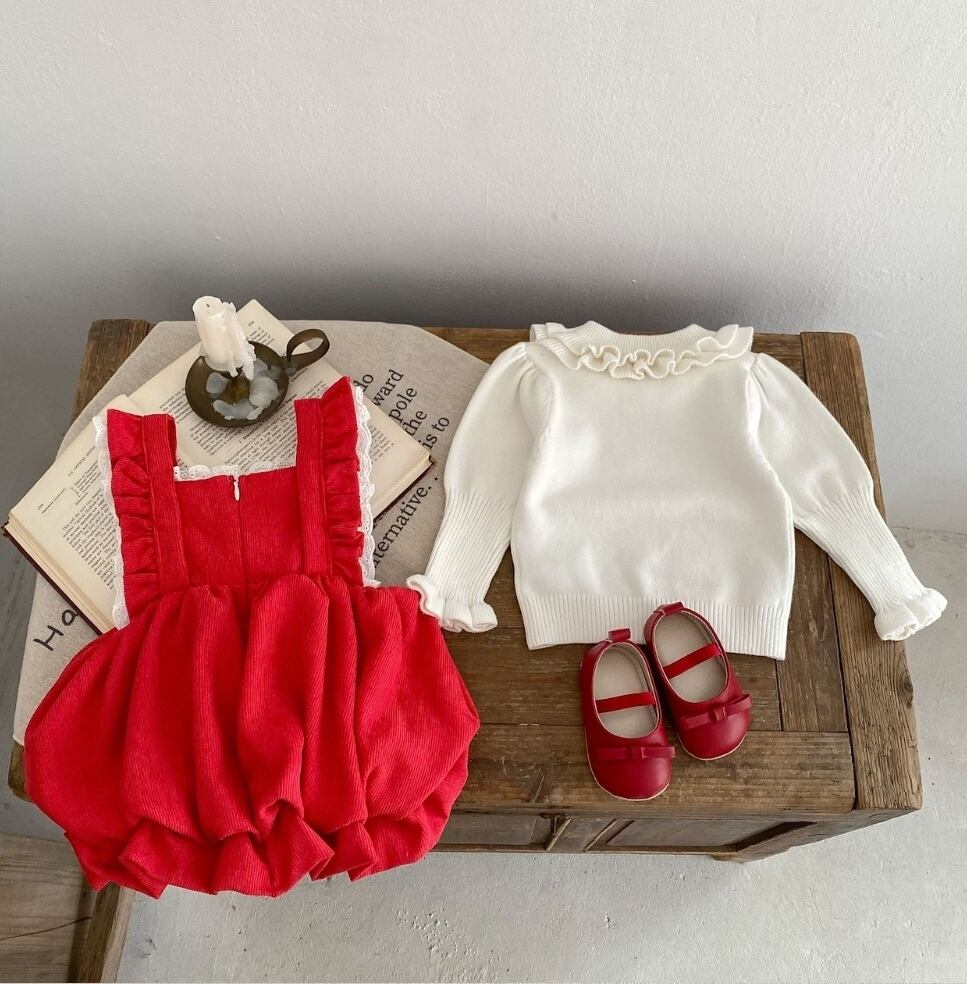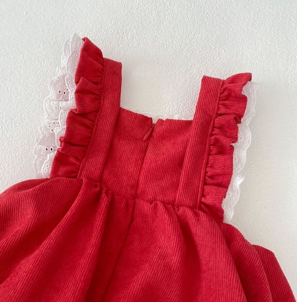 コーデュロイの可愛いお素材とレースが女の子らしい
