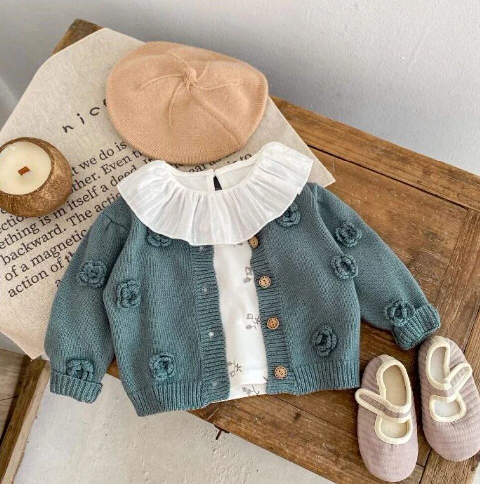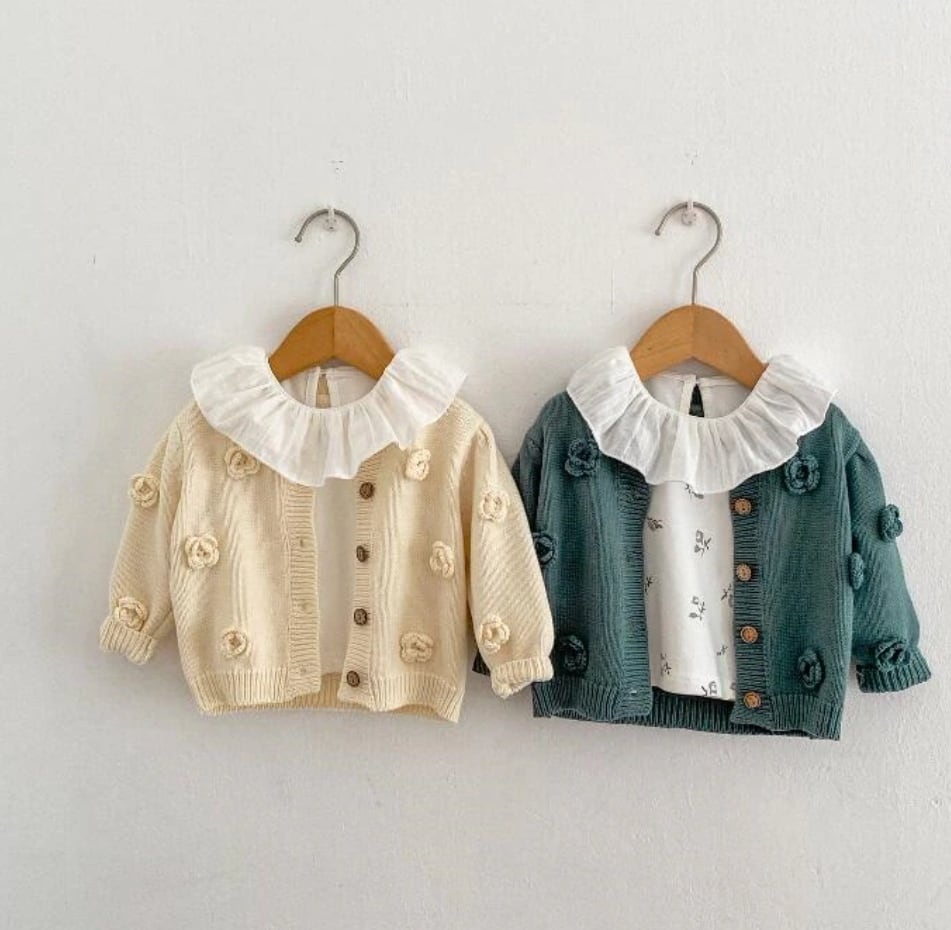 ローズフラワーモチーフが可愛い ニットカーディガン です♡