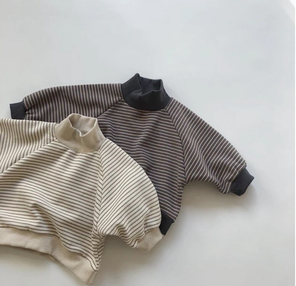 冬の新しい子供用ハーフハイネックストライプ