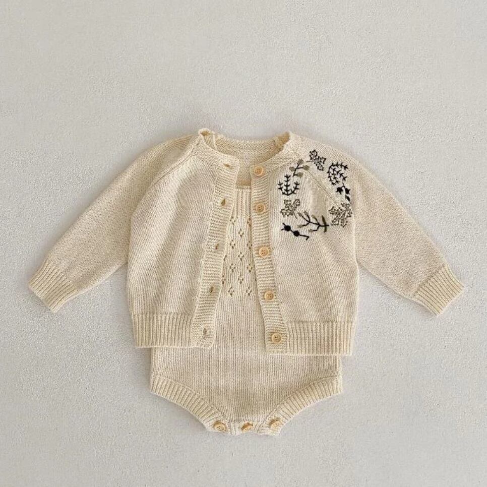 赤ちゃんと赤ちゃんのニット刺繍花セーター