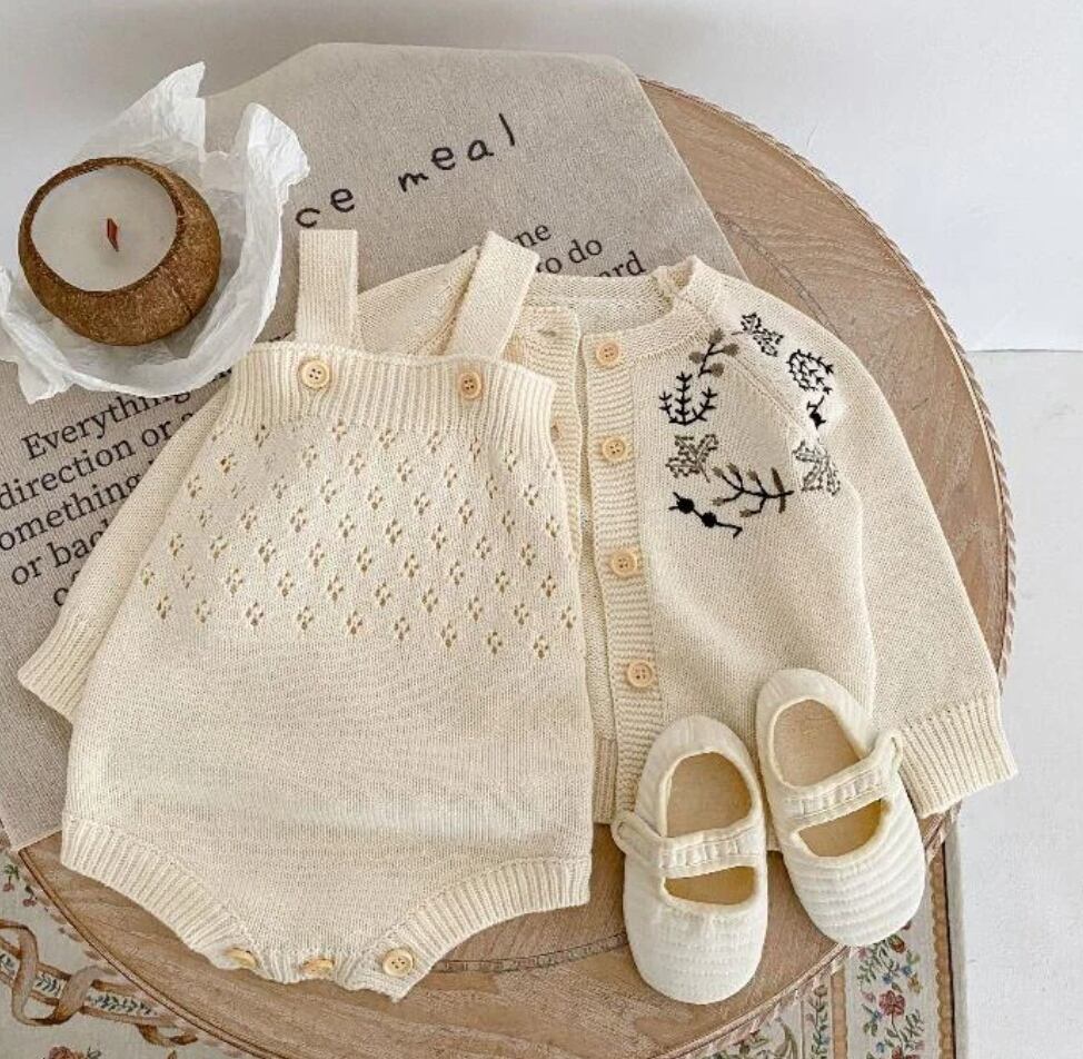 透かし編みが可愛い リーフリース ニット ロンパース です♡