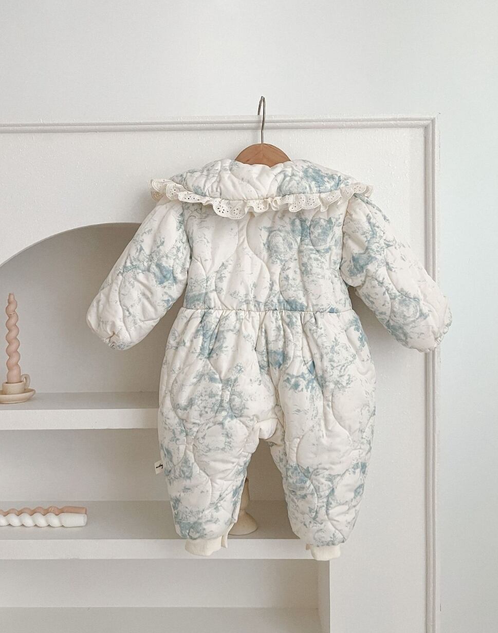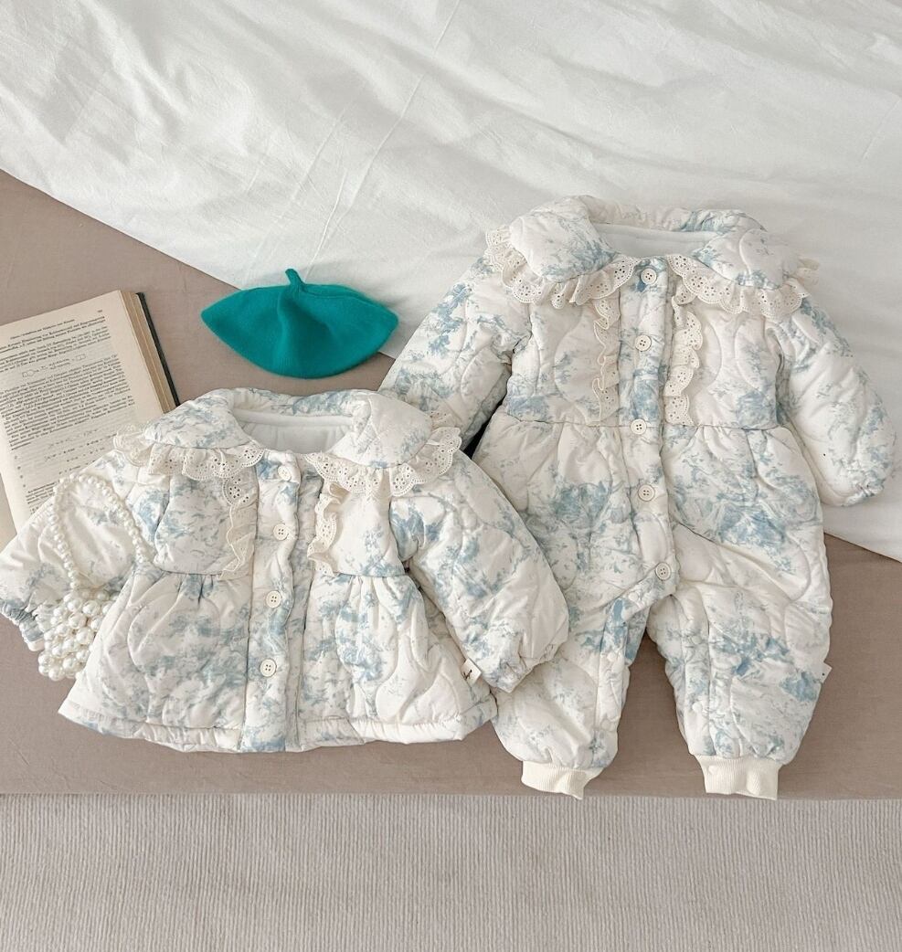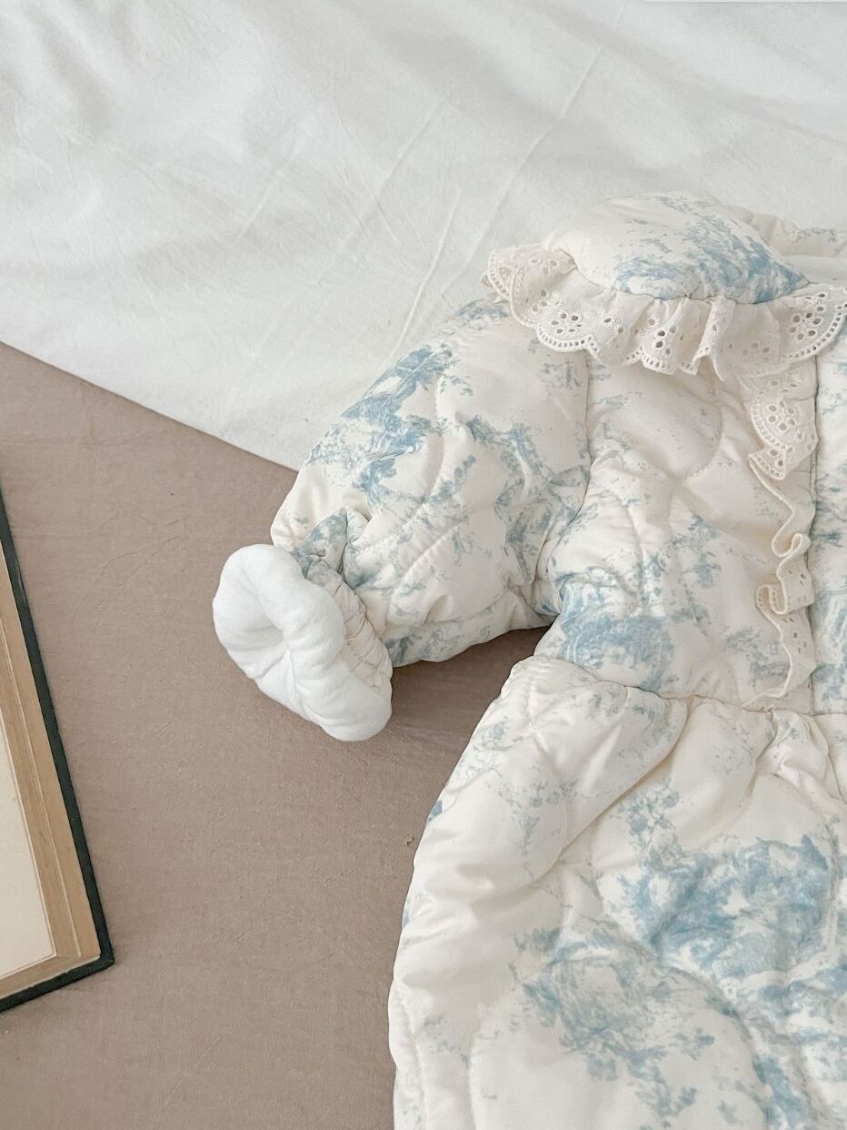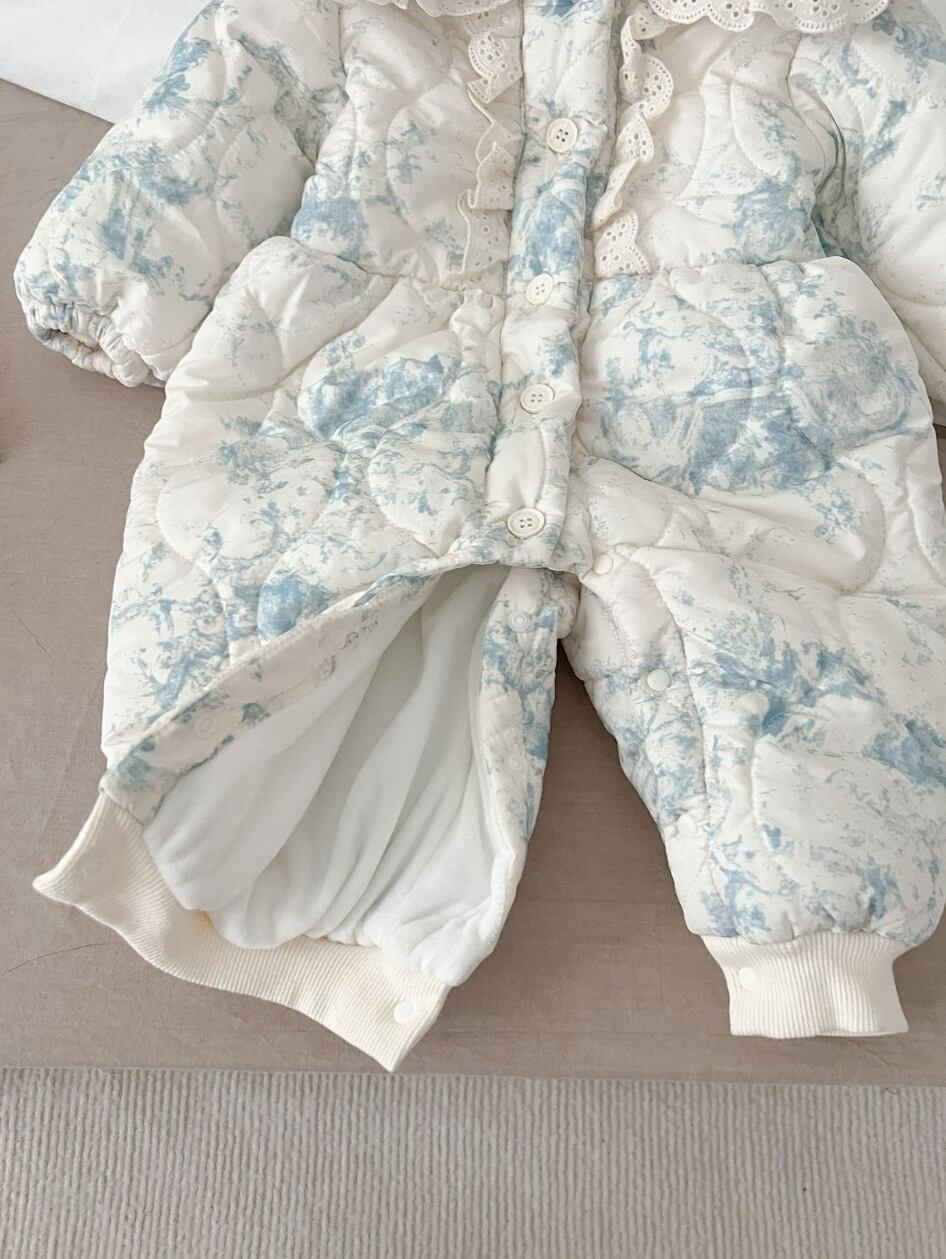 【予約】【66-100】ブルー レース キルティング ジャンプスーツ
