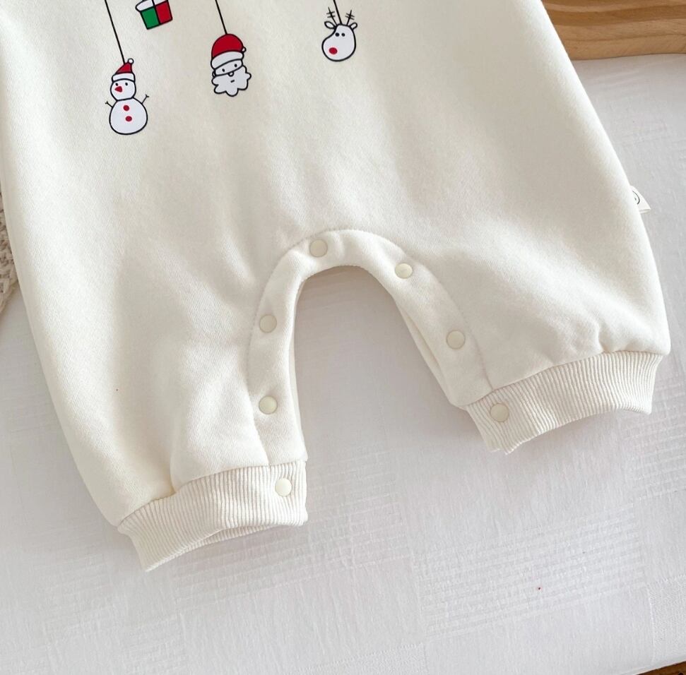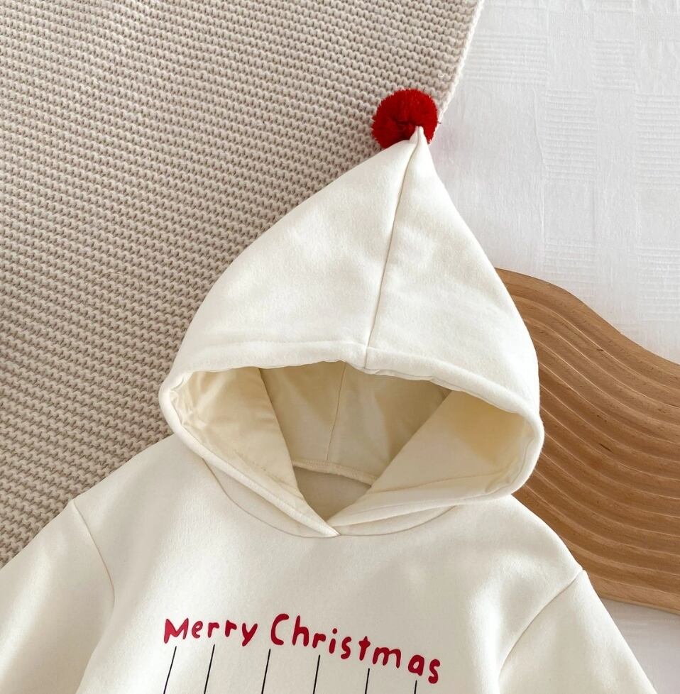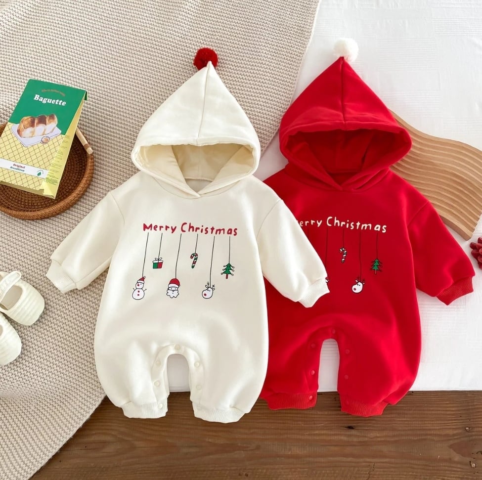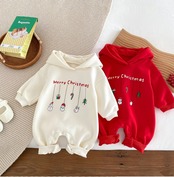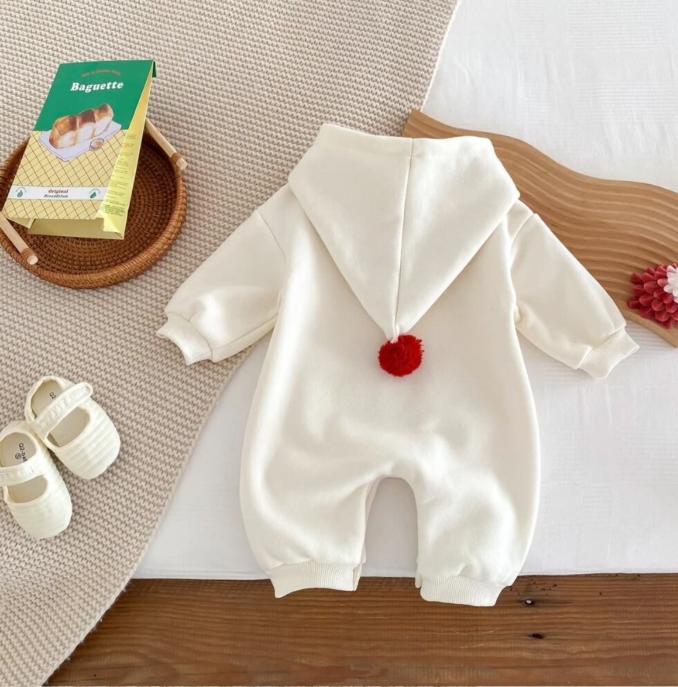 【予約】【66-90】クリスマス ぽんぽんフード付きロンパース