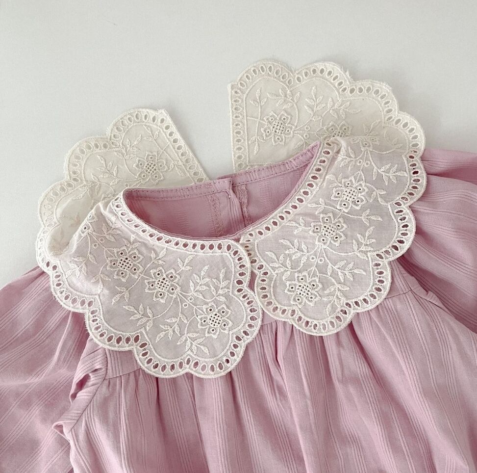 【予約】【66-90】 大きなレース襟 ラベンダー ロンパース