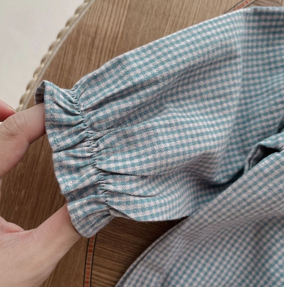襟付きボタンとギンガムチェックが可愛いふんわりロンパース♡