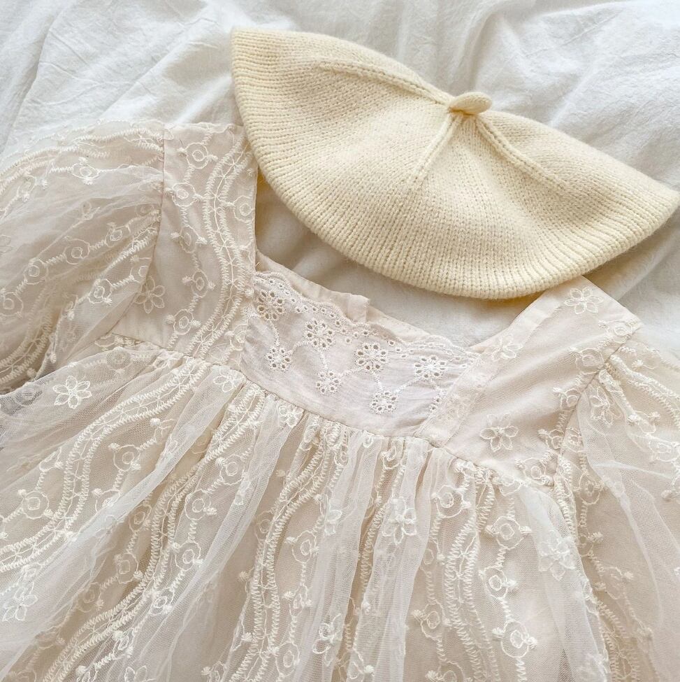 ふんわりとしたレース素材で作られたとってもエレガントなロンパースで♡
