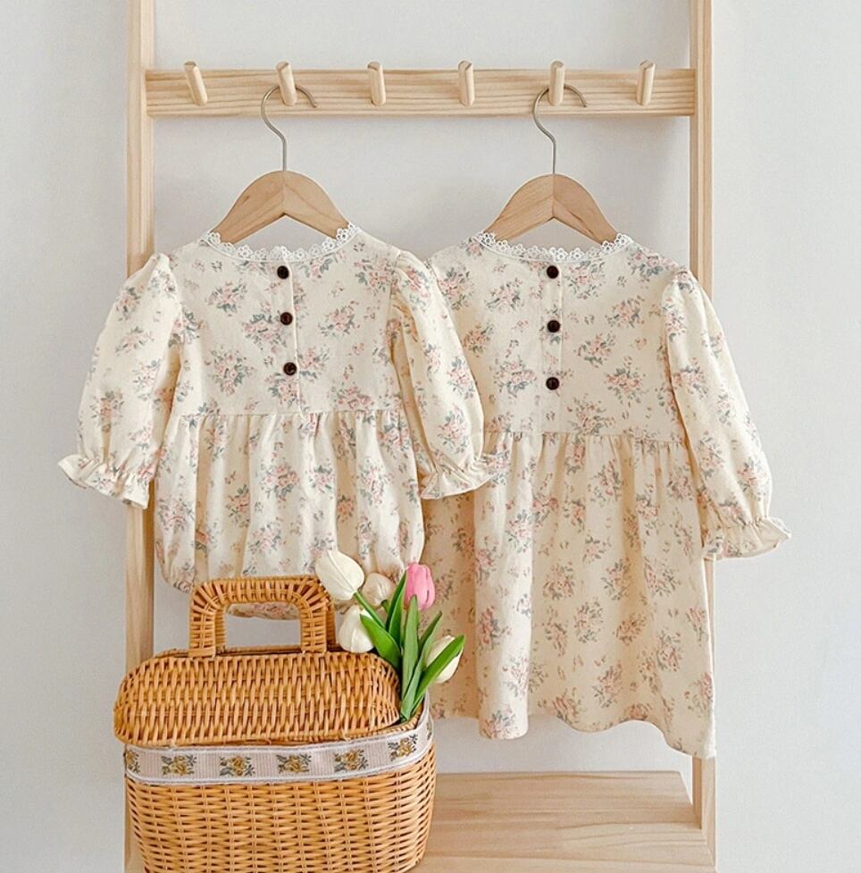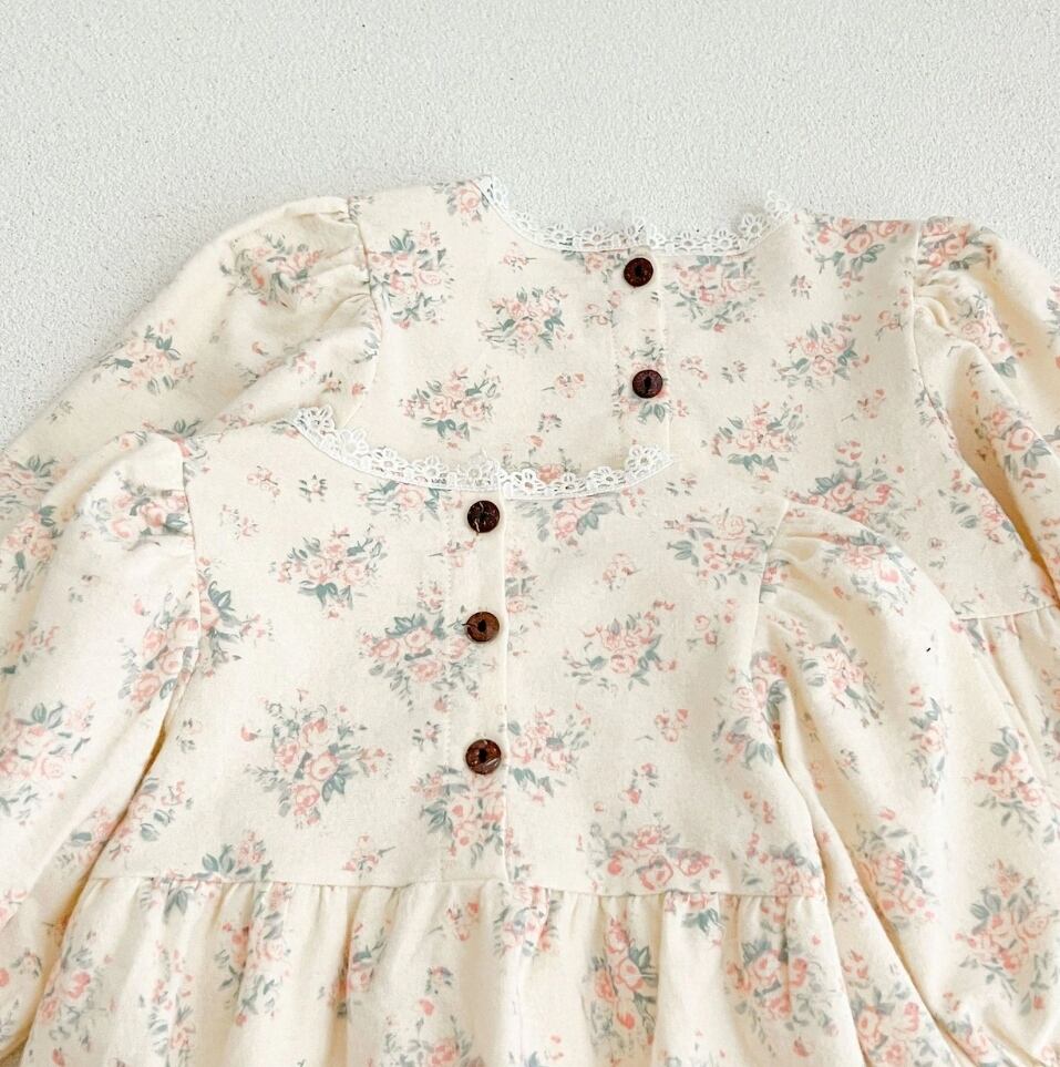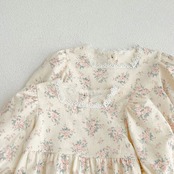 【予約】リンクコーデ 【80-130】 ラウンドネック フラワー ドレス /pp