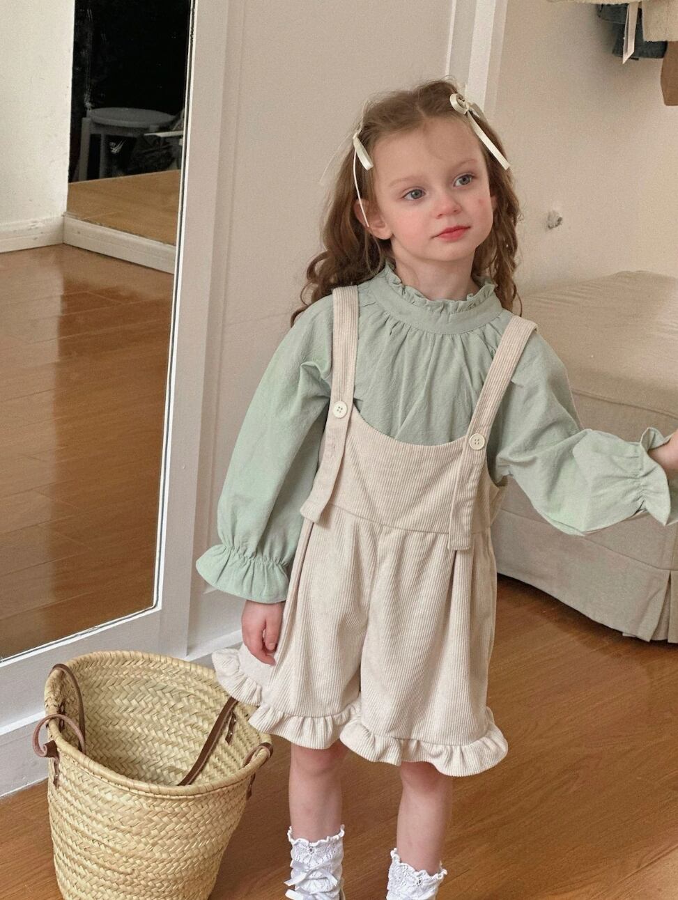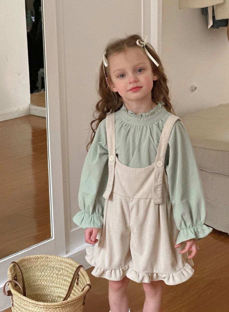 フリルがポイントの可愛らしいサロペットが登場しました!お子様が着るとまるでお人形さんのような可愛らしさ♡