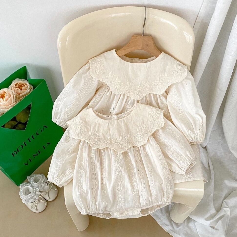 【予約】リンクコーデ 【80-120】 natural embroidery dress