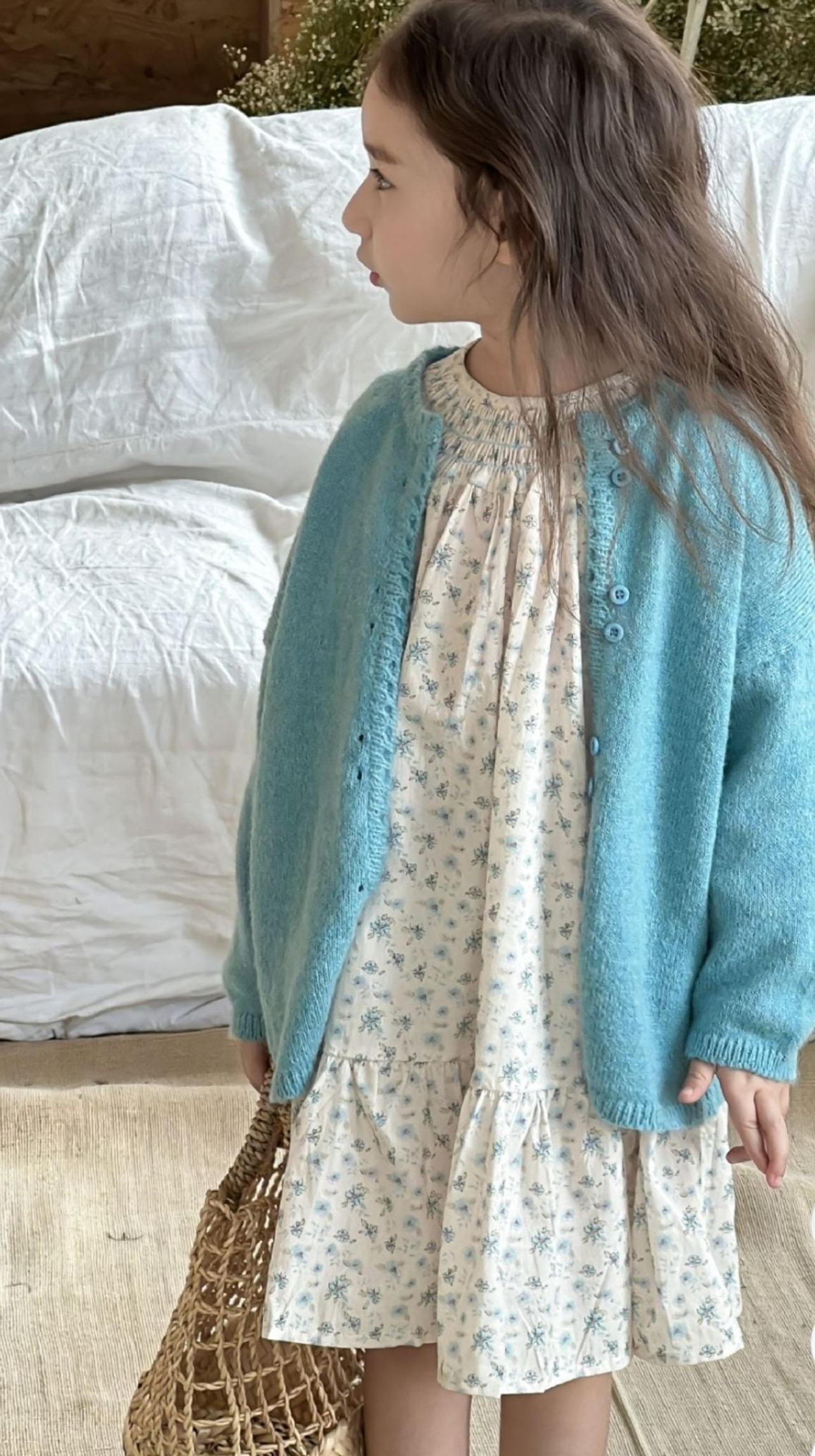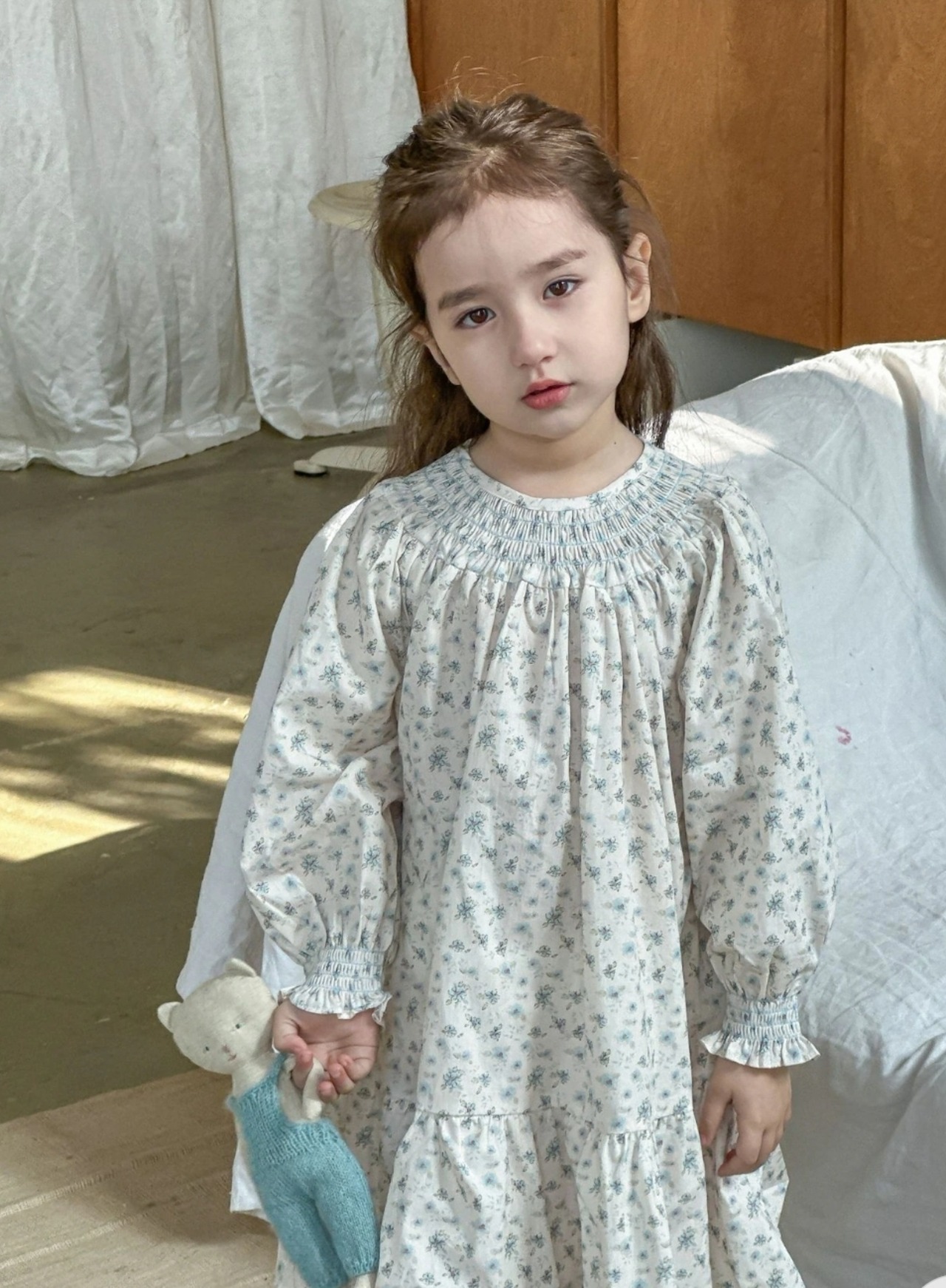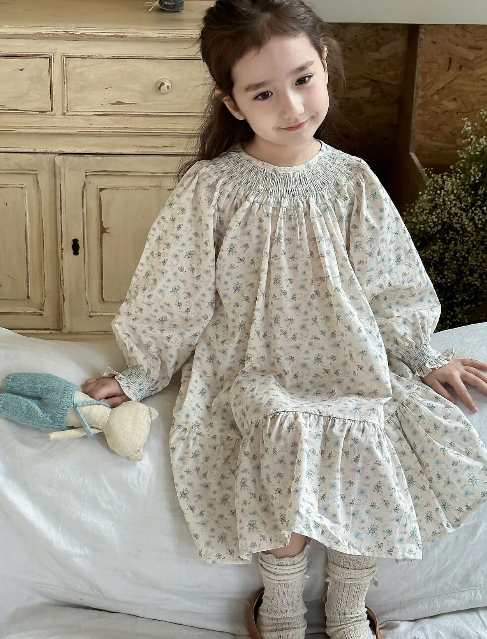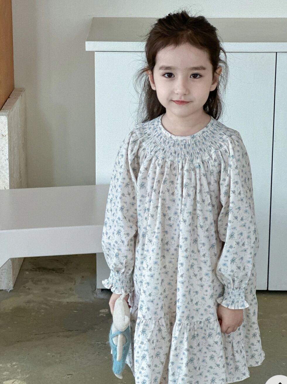 ブルーの美しい花柄が施された、可愛らしいワンピース♡