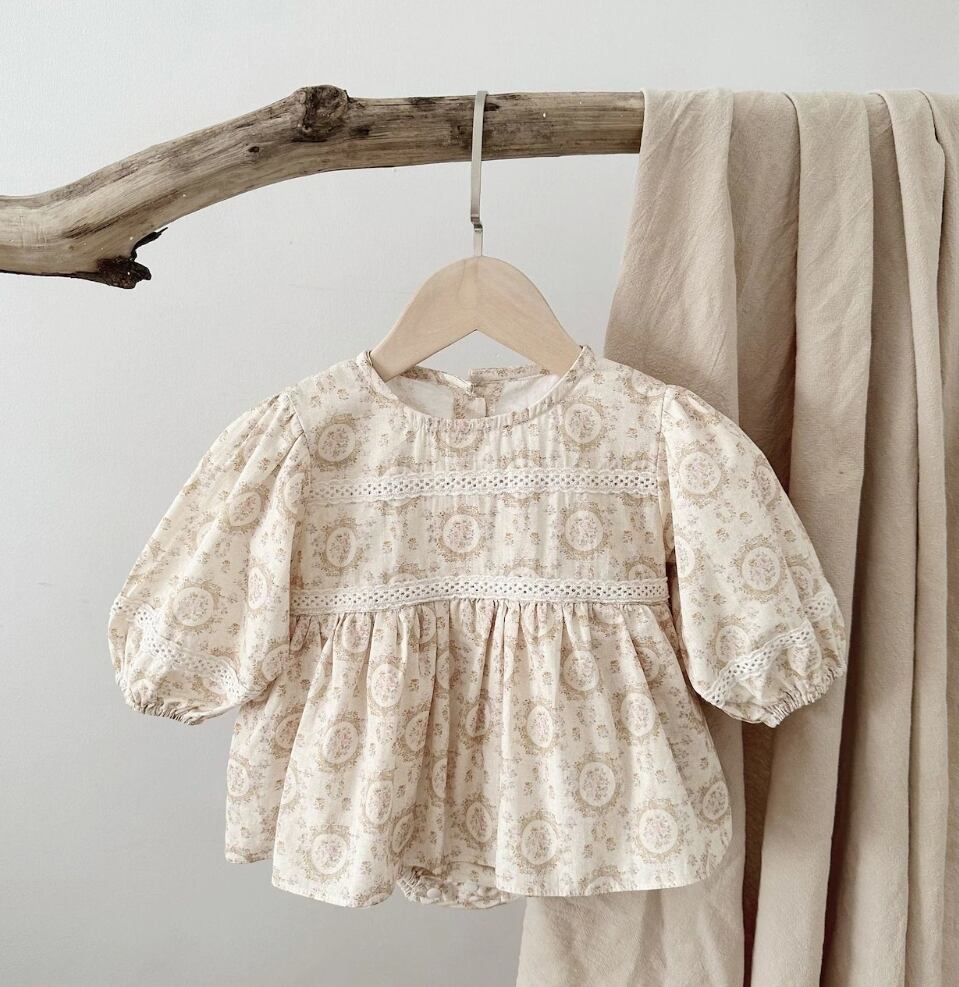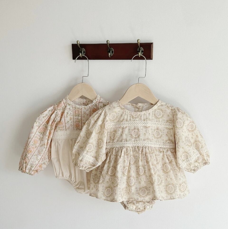 ベビー服 赤ちゃんのジャンプスーツ 女の子 レース丸首長袖スカート