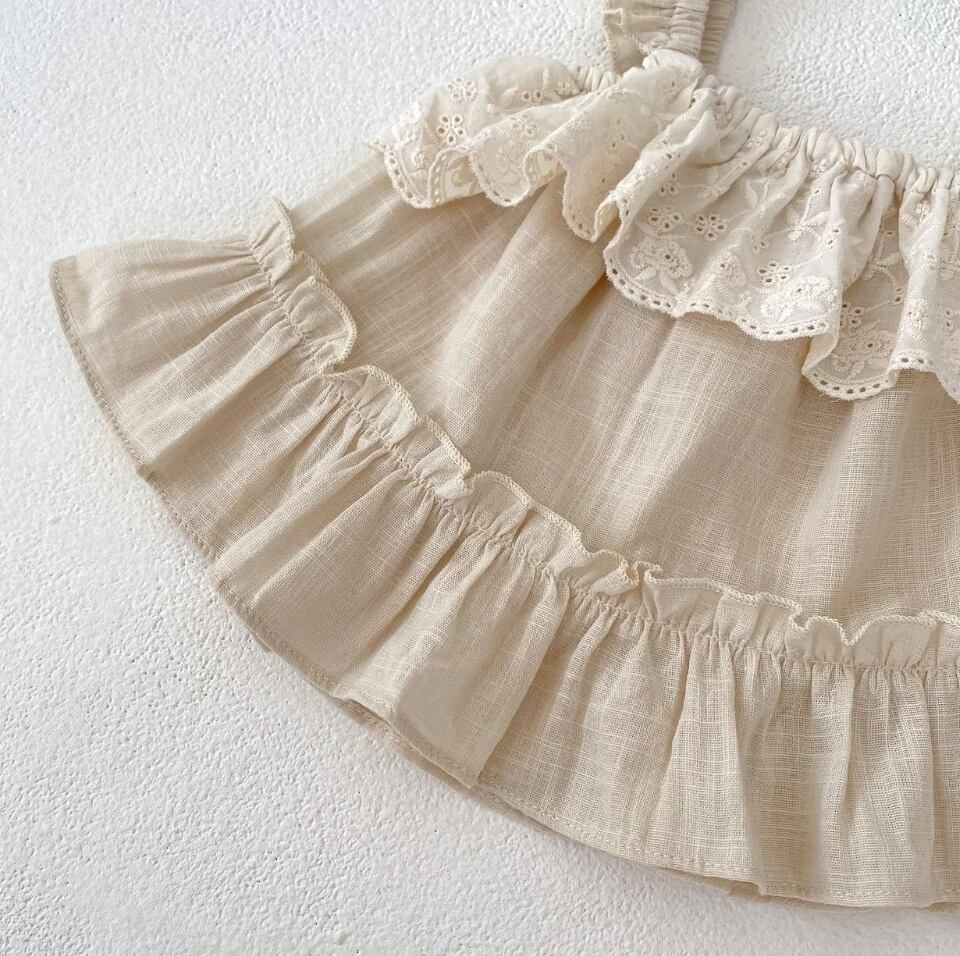 【予約】【66-100】2点セット コットンリネン レース セットアップ /pp