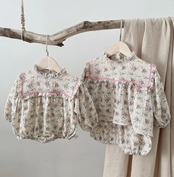春秋 赤ん坊ロンパース 小花長袖上着短パン2点セット