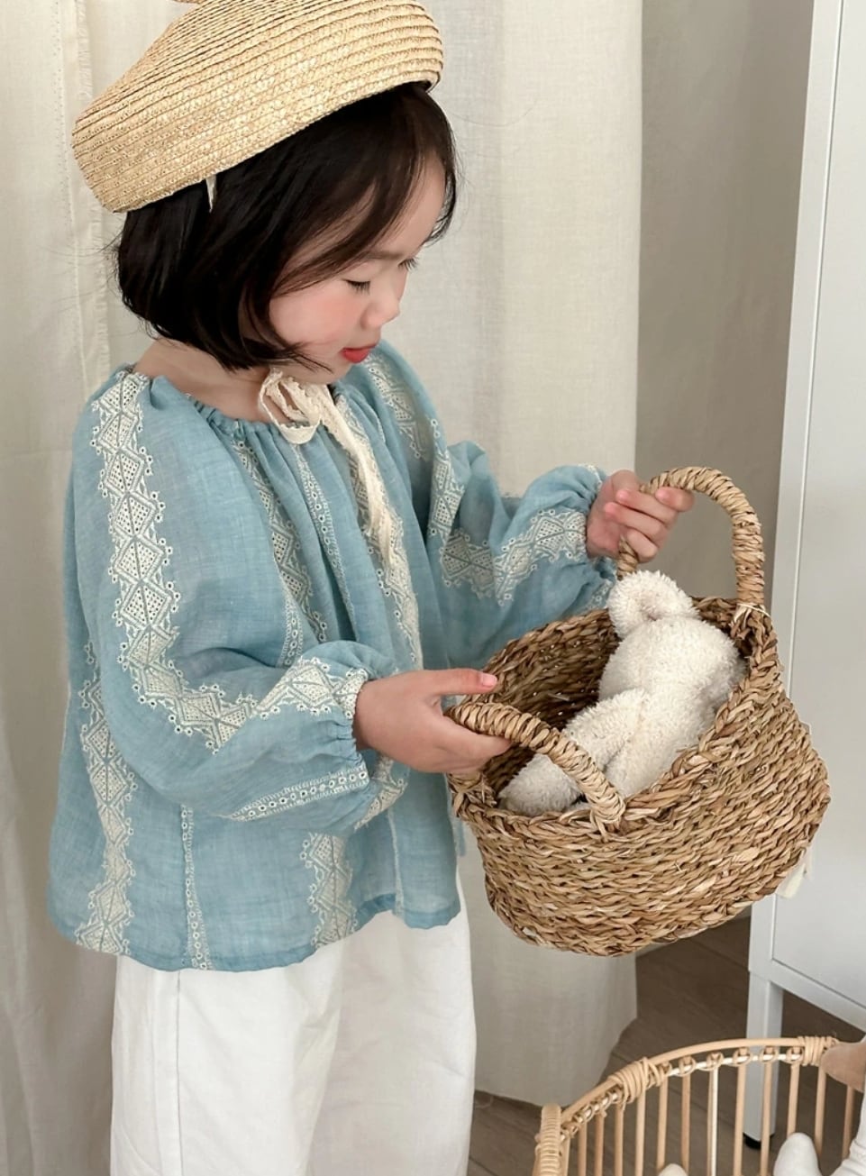 【予約】リンクコーデ 【80-130】エスニック 刺繍 ブラウス /pp
