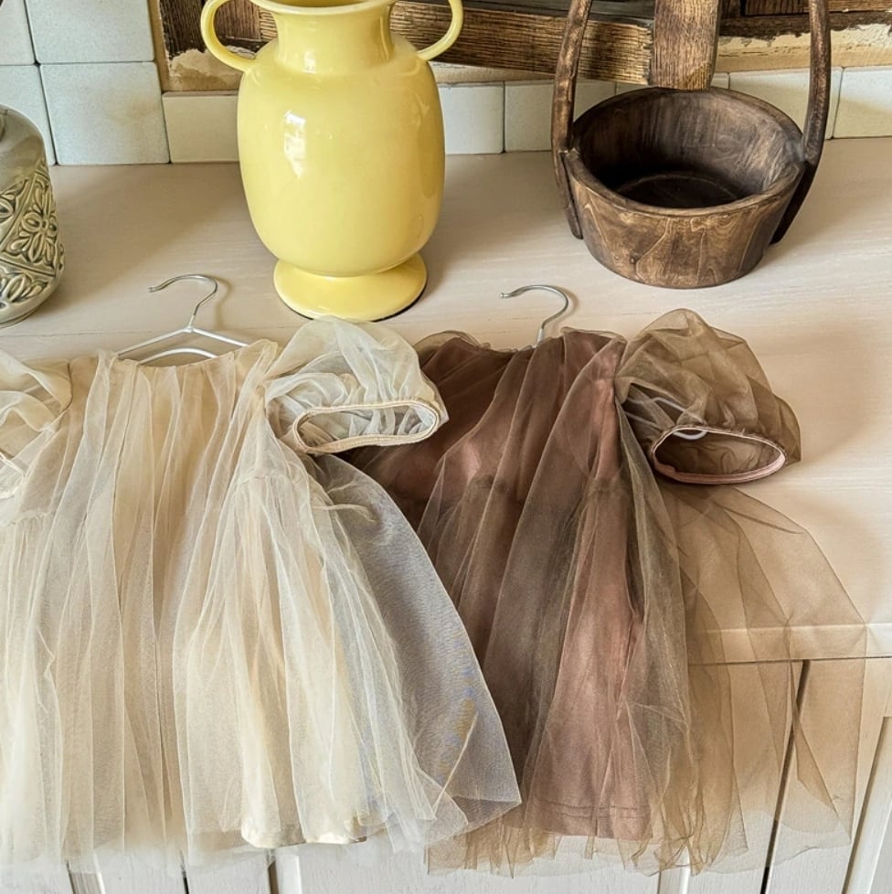 【予約】【80-130】2color chiffon puff apricot dress /pp