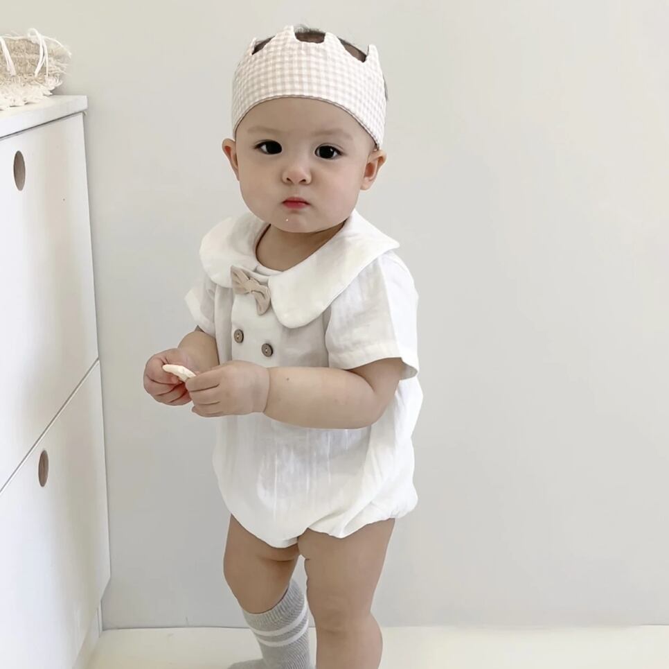 【予約】【66-90】ダブルボタン 蝶ネクタイ ロンパース