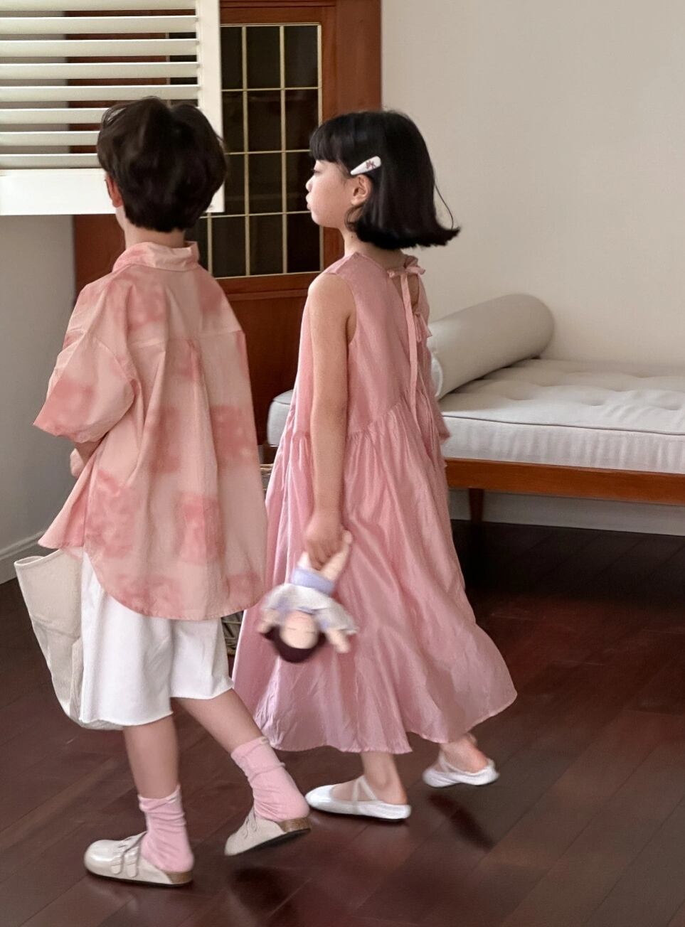 【予約】リンクコーデ【90-150 】 サーモンピンク ワンピース pp