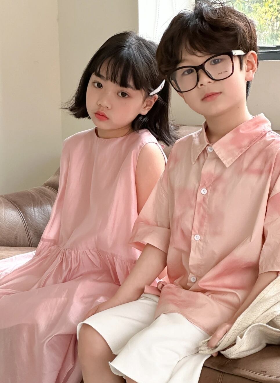 【予約】リンクコーデ【90-150 】 サーモンピンク シャツ pp
