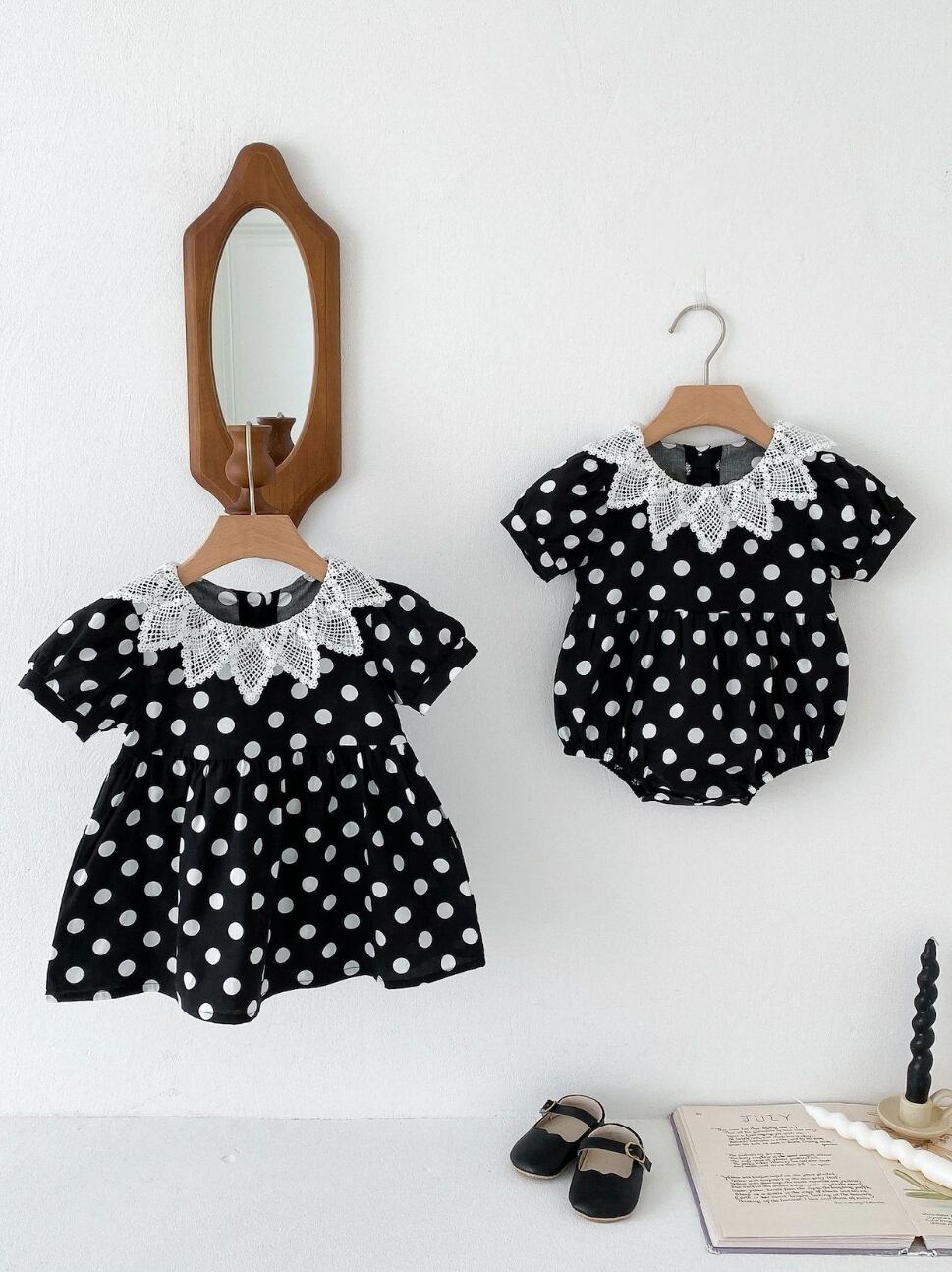 【予約】リンクコーデ 【73-110】レース襟 ドット ワンピース /pp